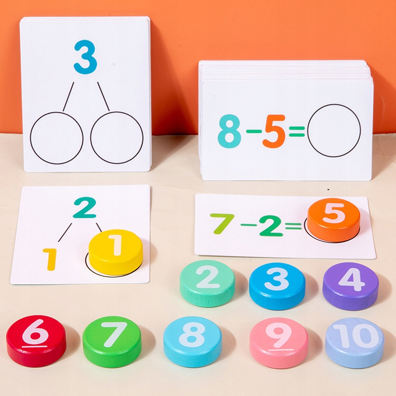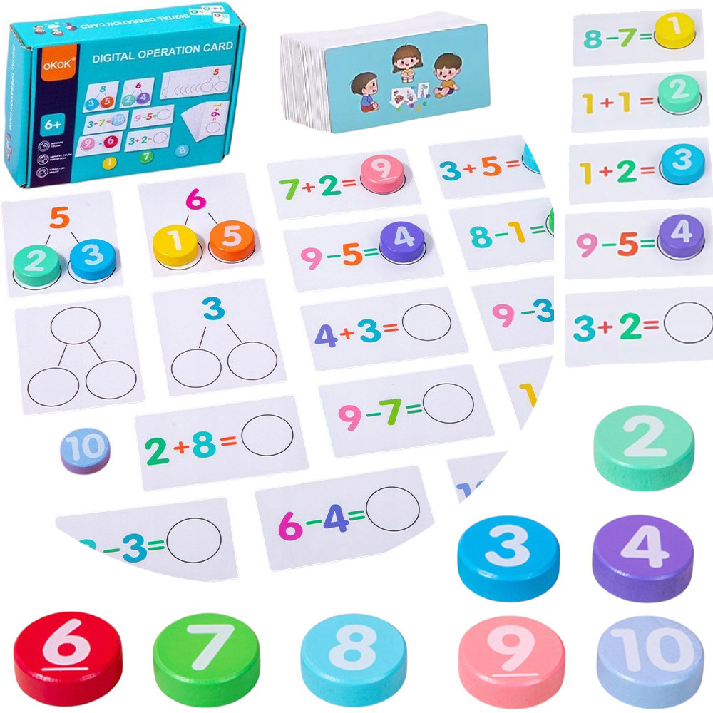 - Edukacyjna gra z kartami do nauki liczenia matematyki w duchu Montessori – dodawanie i odejmowanie dla dzieci | nauka liczenia