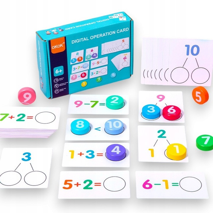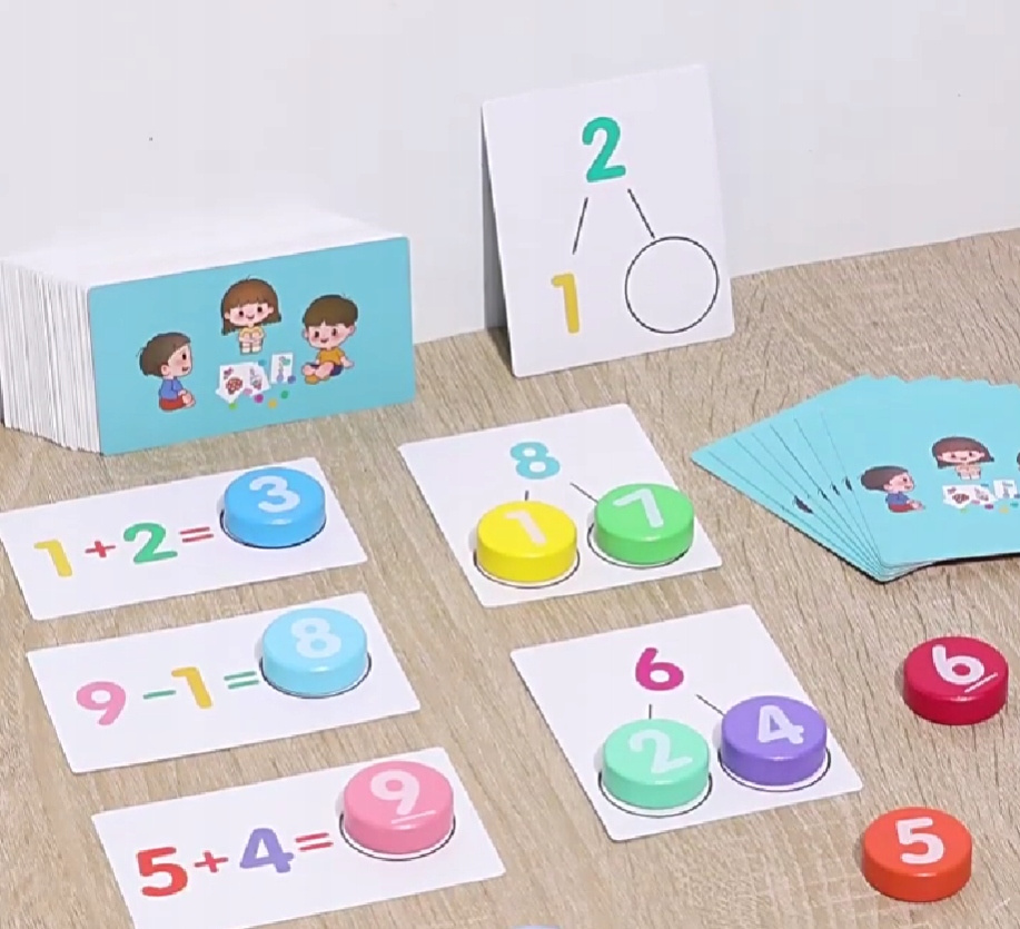 Edukacyjna gra kartowa Montessori wspomaga naukę liczenia, dodawania i odejmowania. Idealna dla dzieci 3+, wspiera rozwój logicznego myślenia i umiejętności matematycznych.