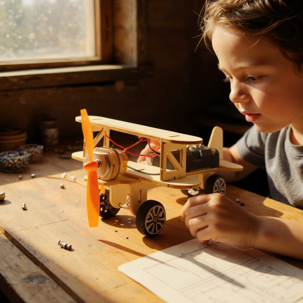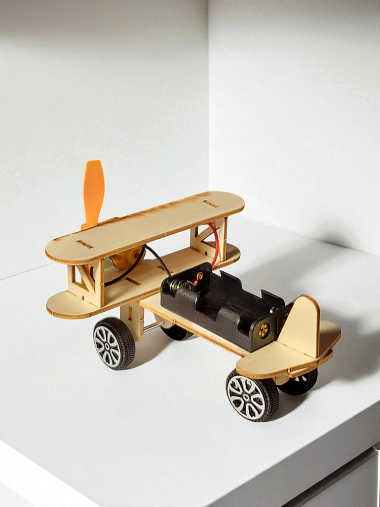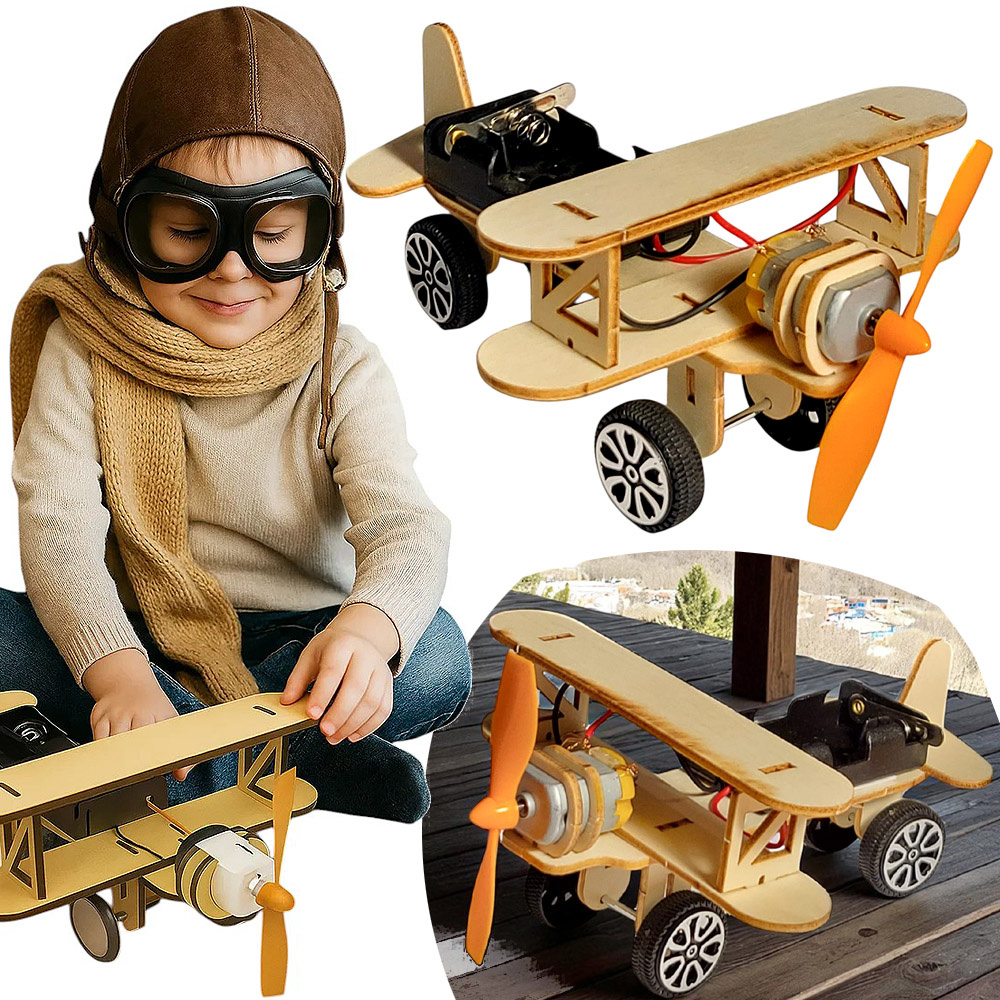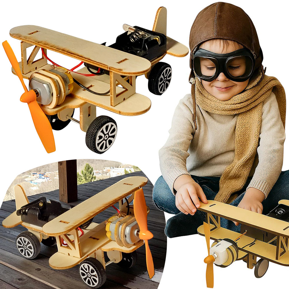 Zbuduj własny drewniany samolot! Zestaw edukacyjny DIY z silnikiem na baterie rozwija kreatywność, zdolności manualne i pasję do techniki. Idealny prezent dla dzieci od 6 lat.
