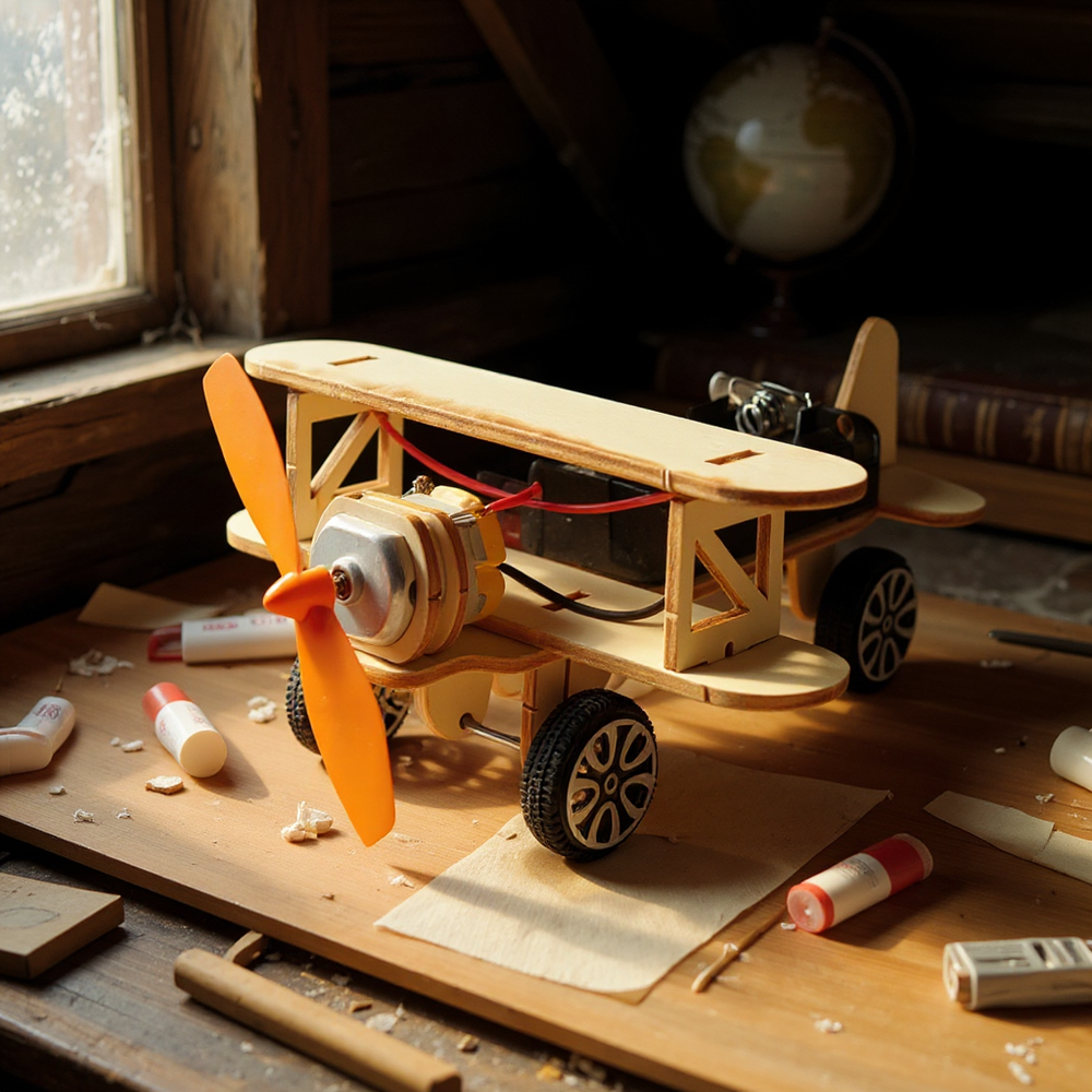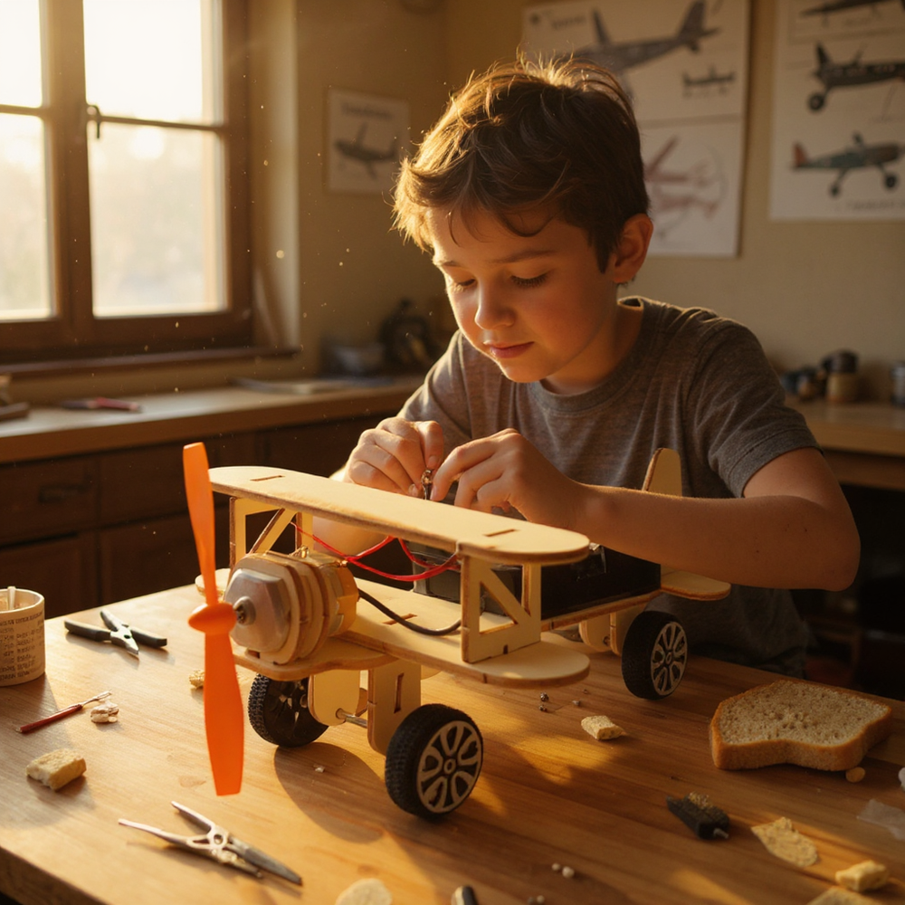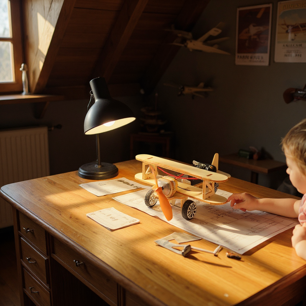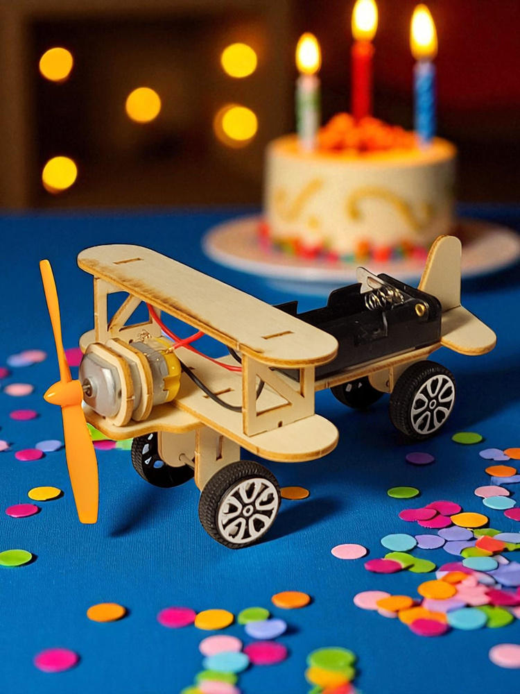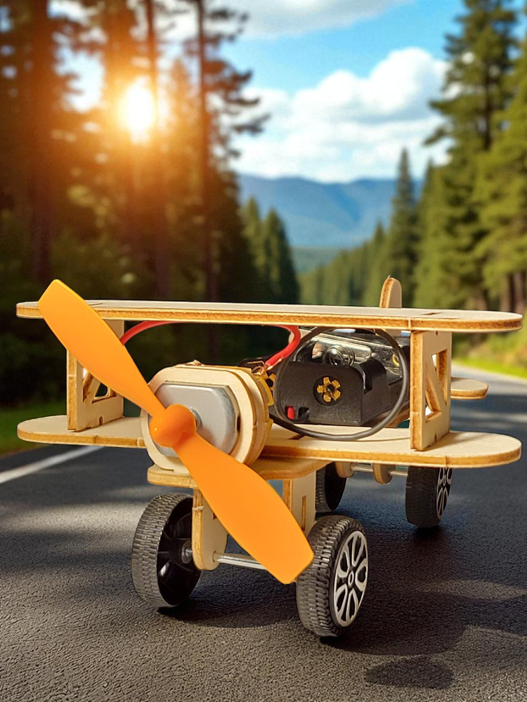 Zbuduj własny drewniany samolot! Zestaw edukacyjny DIY z silnikiem na baterie rozwija kreatywność, zdolności manualne i pasję do techniki. Idealny prezent dla dzieci od 6 lat.
