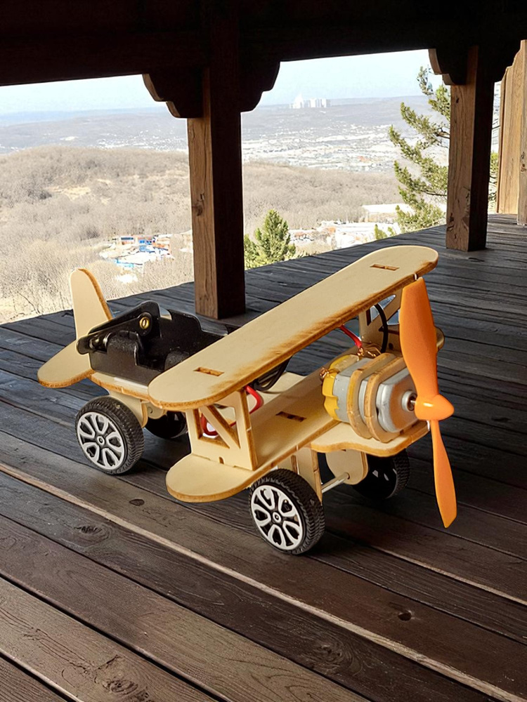 - Drewniany model samolotu do składania z silnikiem na baterie – zabawka edukacyjna STEM, DIY dla dzieci