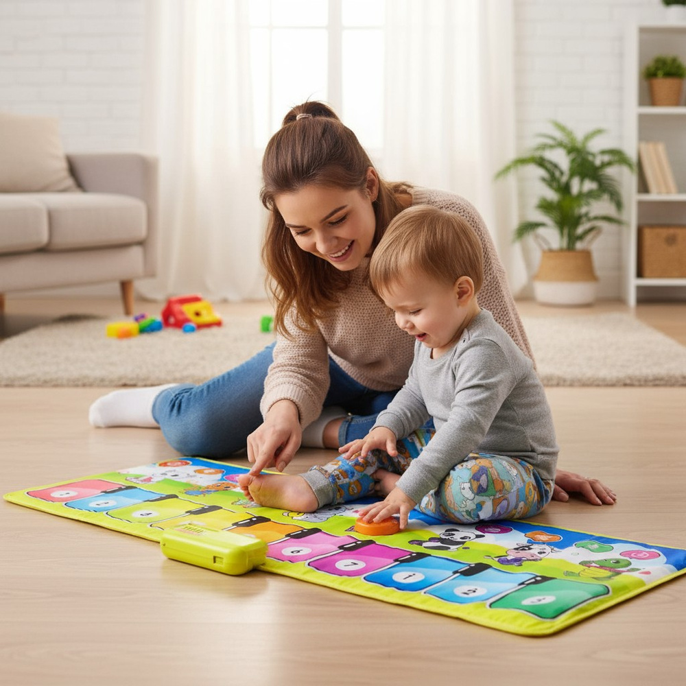 Witaj w świecie, w którym ruch łączy się z melodią — prezentujemy wyjątkową matę muzyczną z klawiszami dotykowymi, wbudowanym głośnikiem i funkcją nagrywania. Ta intuicyjna mata zaprasza dziecko do aktywności — stąpaj po klawiszach i komponuj rytmy stopami!