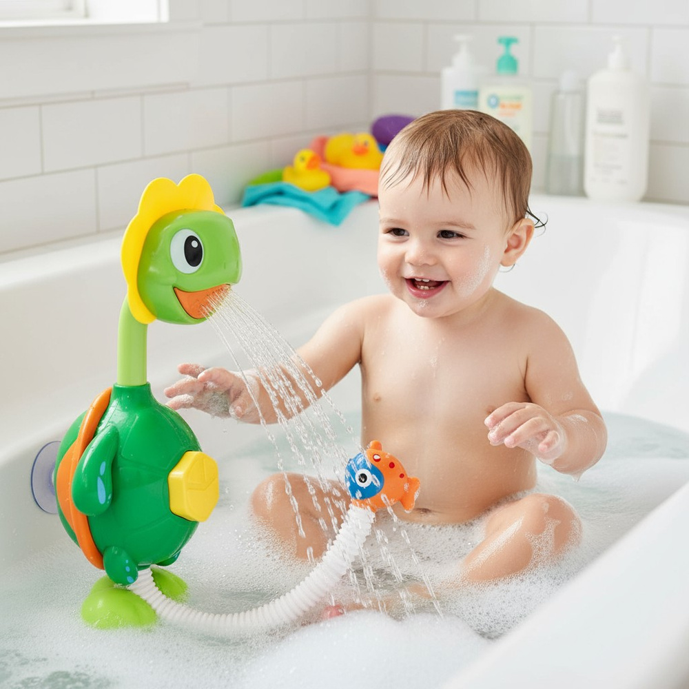 Zapewnij swojemu dziecku niezapomniane chwile w wannie dzięki interaktywnej fontannie w kształcie żółwia (żółwik). Nasz prysznic-fontanna żółw / żółwik do kąpieli to doskonałe połączenie zabawy i edukacji – stymuluje rozwój sensoryczny, motorykę i oswaja dziecko z wodą.