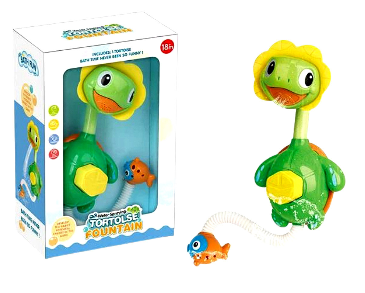 Fontanna-prysznic w kształcie żółwia (żółw / żółwik) przeznaczona do zabawy w wodzie – idealna jako zabawka do kąpieli dla dzieci. Produkt łączy funkcję dekoracyjną i użytkową: po wciśnięciu przycisku pompuje wodę, tworząc efekt „deszczu” – woda wydobywa się z pyszczka żółwia, spadając do wanny.