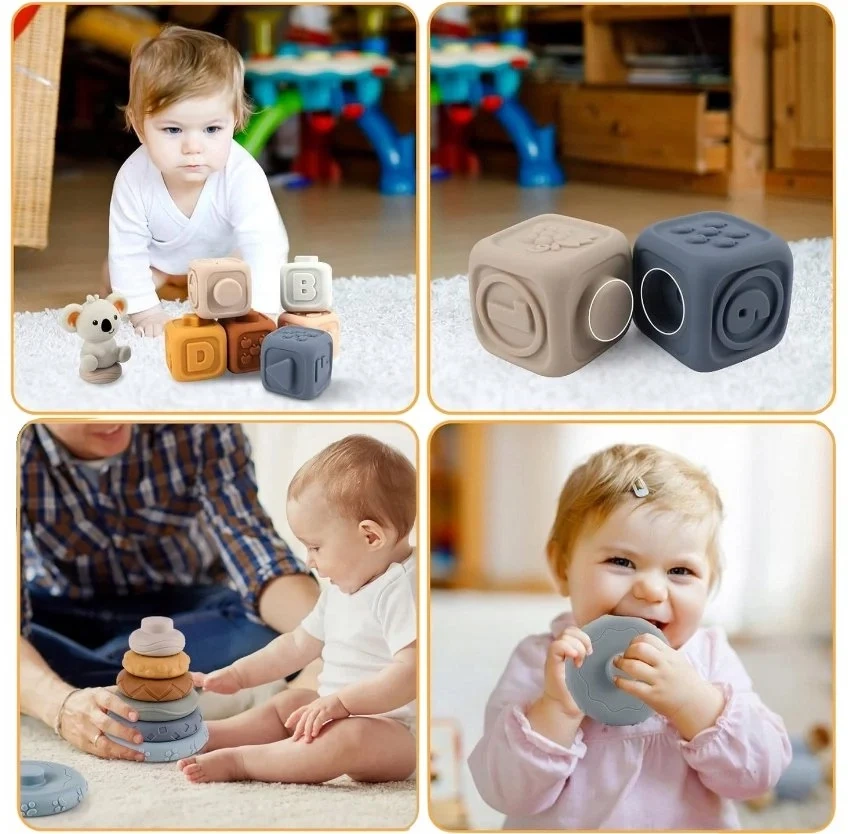 - Zestaw Klocki Sensoryczne Miękkie Gumowe Kreatywne Gryzaki Wieża dla Dzieci to doskonała propozycja zabawki edukacyjnej, która łączy w sobie funkcje gryzaka, sensorycznej stymulacji, układanki i zabawy konstrukcyjnej. Produkt przeznaczony dla dzieci od około 6. miesiąca życia.