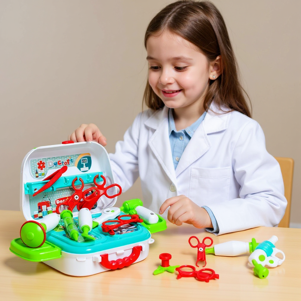 Ten komplet akcesoriów medycznych jest zaprojektowany tak, by dziecko mogło swobodnie wcielać się w rolę lekarza, pielęgniarki lub ratownika, jednocześnie rozwijając zdolności manualne, wyobraźnię i empatię.