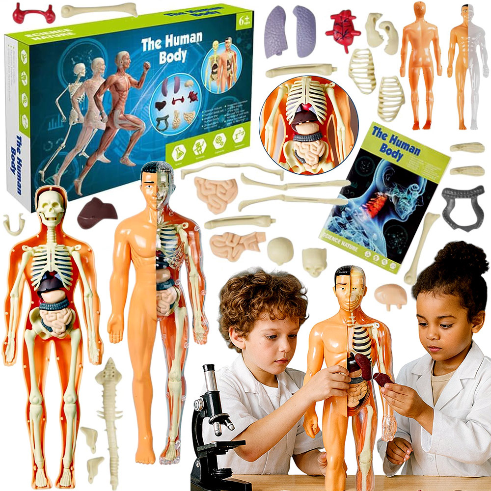 - Interaktywny model anatomiczny 3D ludzkiego ciała: szkielet + narządy wewnętrzne, wyjmowane części, edukacyjna zabawka dla dzieci od 6 lat. Doskonały do nauki anatomii, szkoły, domu.