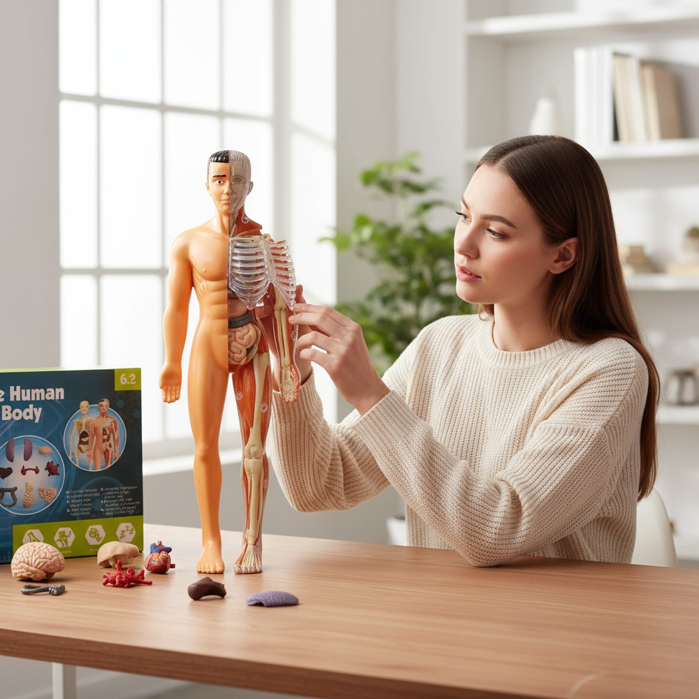 Model anatomiczny 3D ludzkiego ciała to nie tylko zabawka - to interaktywna pomoc edukacyjna łącząca naukę i zabawę. Dzięki niemu dziecko (lub uczeń) może poznać budowę człowieka, zobaczyć relacje między kostnym szkieletem a narządami wewnętrznymi. Taka forma nauki przez dotyk i manipulację wspiera zapamiętywanie lepiej niż statyczne grafiki czy plakaty.