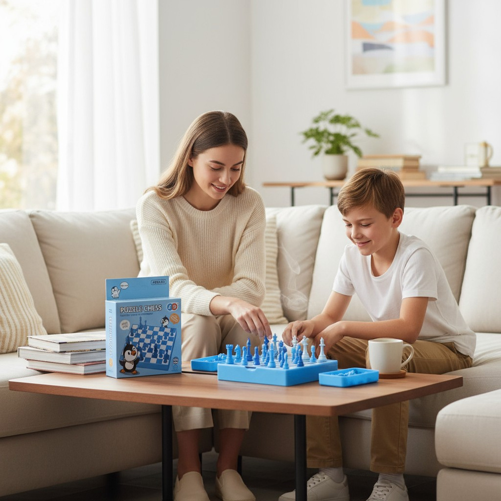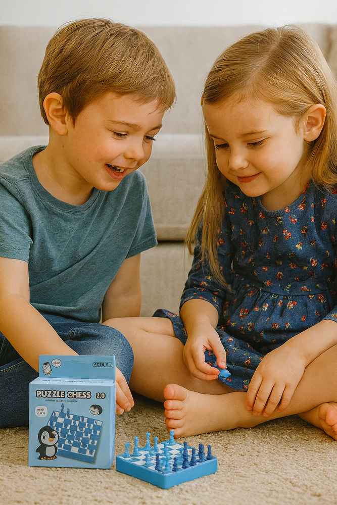 „Szachy Dziecięce Pingwiny” to wyjątkowa i przyjazna wersja klasycznej gry szachowej, dostosowana do potrzeb dzieci – kolorystyka i motyw pingwinów sprawiają, że dzieci już od najmłodszych lat mogą poznawać świat strategii i logicznego myślenia.