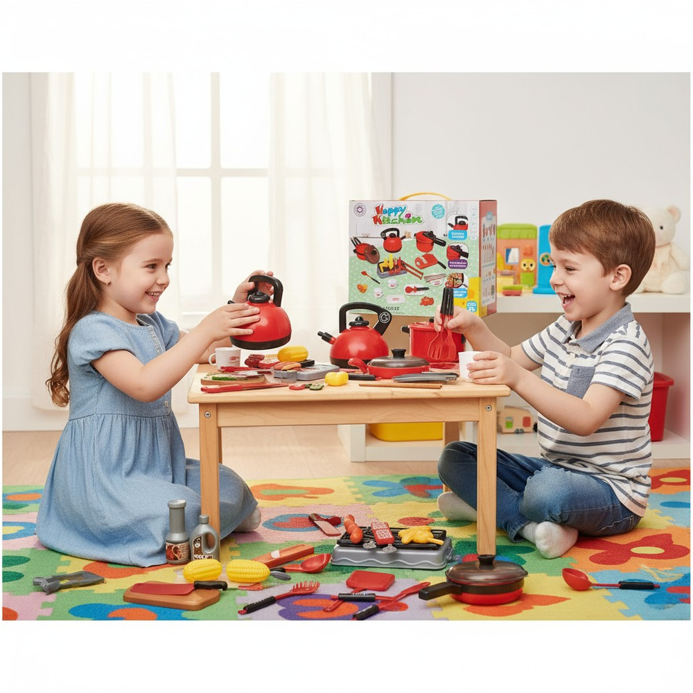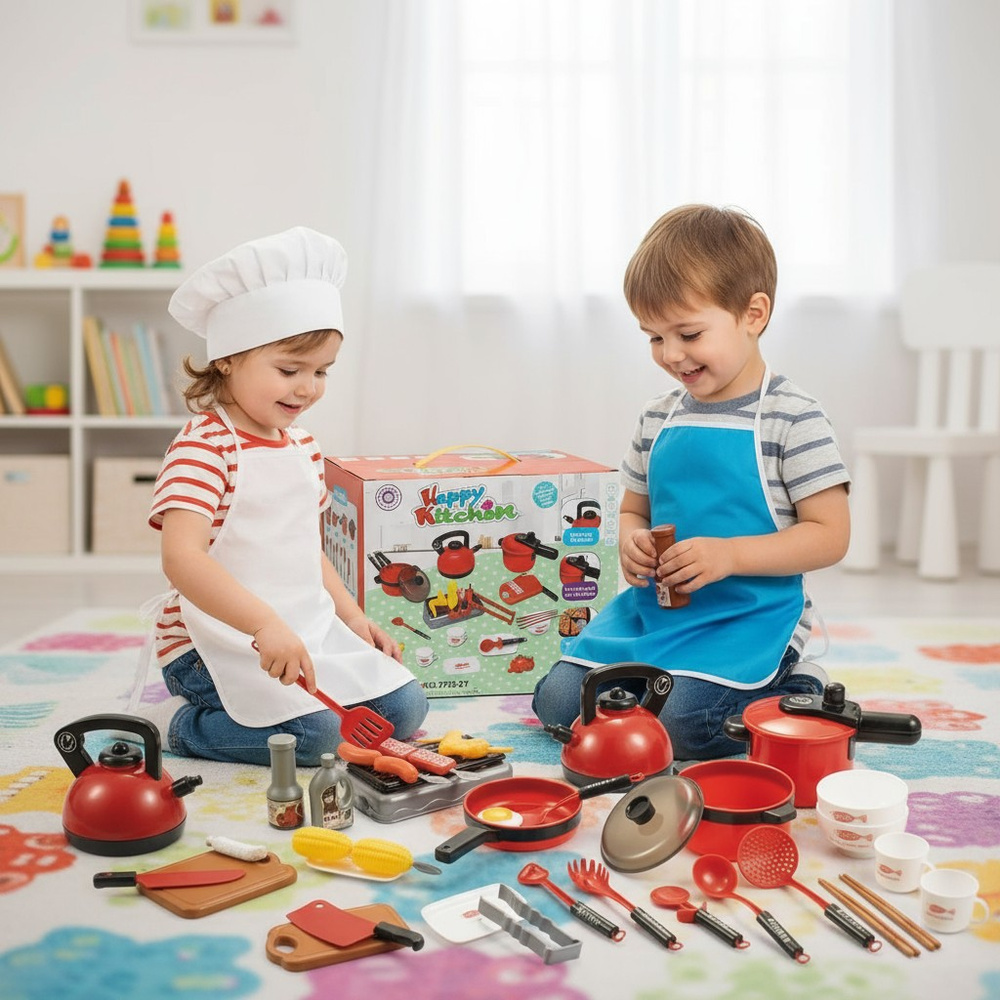 - Zestaw kuchenny to kompletna mini-kuchnia dla małego kucharza lub kucharki! Kolorowy, bezpieczny i realistyczny zestaw z garnkami, sztućcami i akcesoriami zachwyci każde dziecko, które uwielbia zabawę w gotowanie.