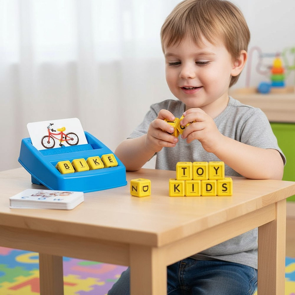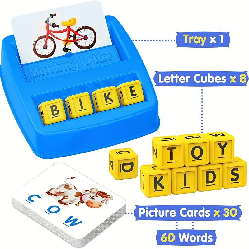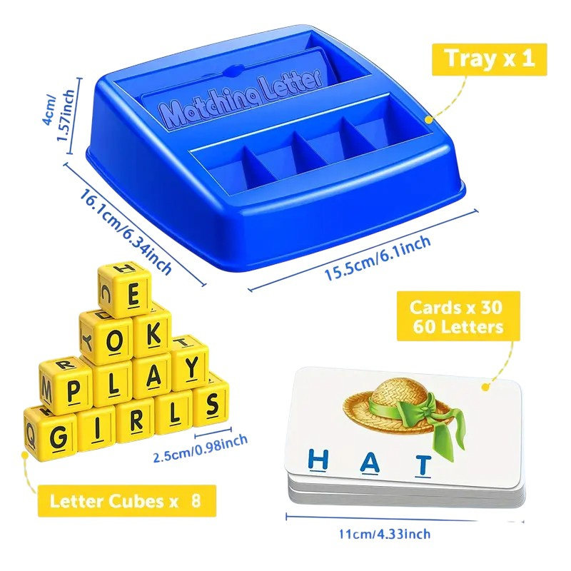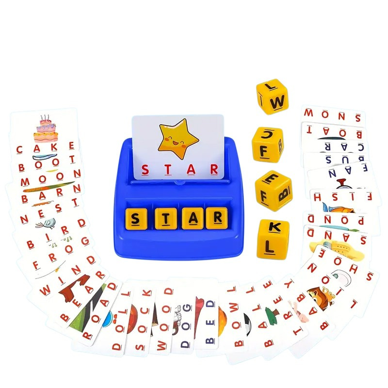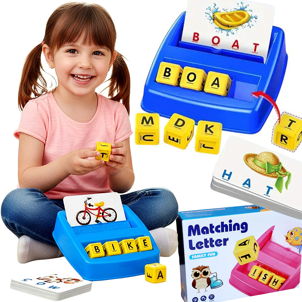 Zestaw łączy fiszki, karty i litery w jedną angażującą zabawę edukacyjną – ucząc pisowni, czytania i rozpoznawania słów po angielsku.