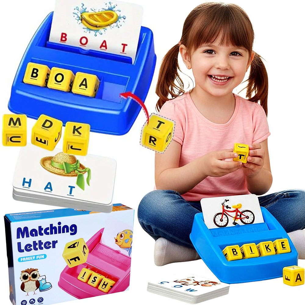 - Rozwijająca gra edukacyjna „Dopasuj Literki”: kolorowe fiszki i karty, nauka słówek po angielsku, zabawa i edukacja w jednym. Idealna dla dzieci od 3 roku życia.
