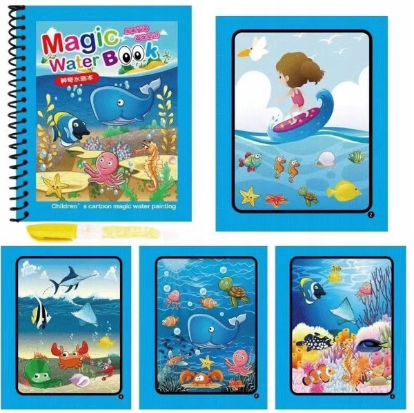 Mata wodna "Podwodny Świat Oceanu" – książeczka malowanka z pisakiem wodnym; strony pełne rysunków zwierząt do malowania wodą, bez brudu, wykorzystywana wielokrotnie, idealna dla dzieci 3 +.