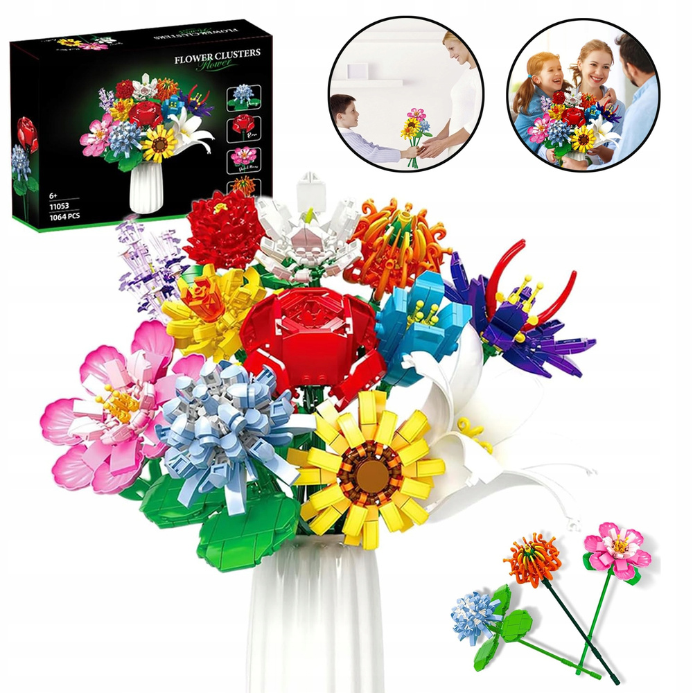 - Produkt: Klocki konstrukcyjne Duży Bukiet 12 różnych kwiatów 1064 el