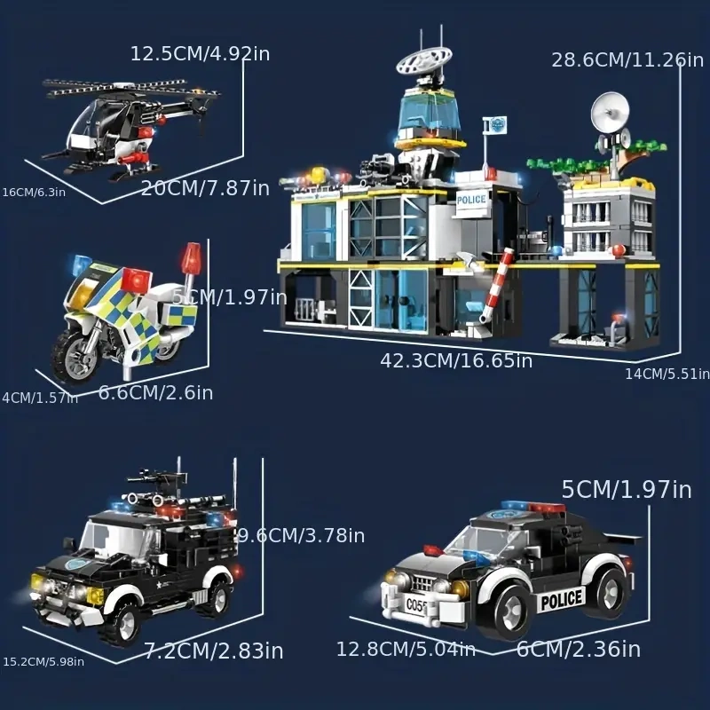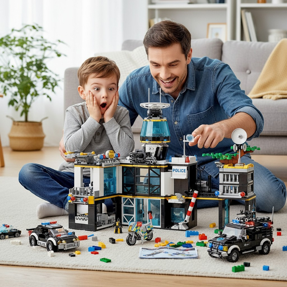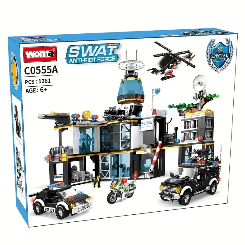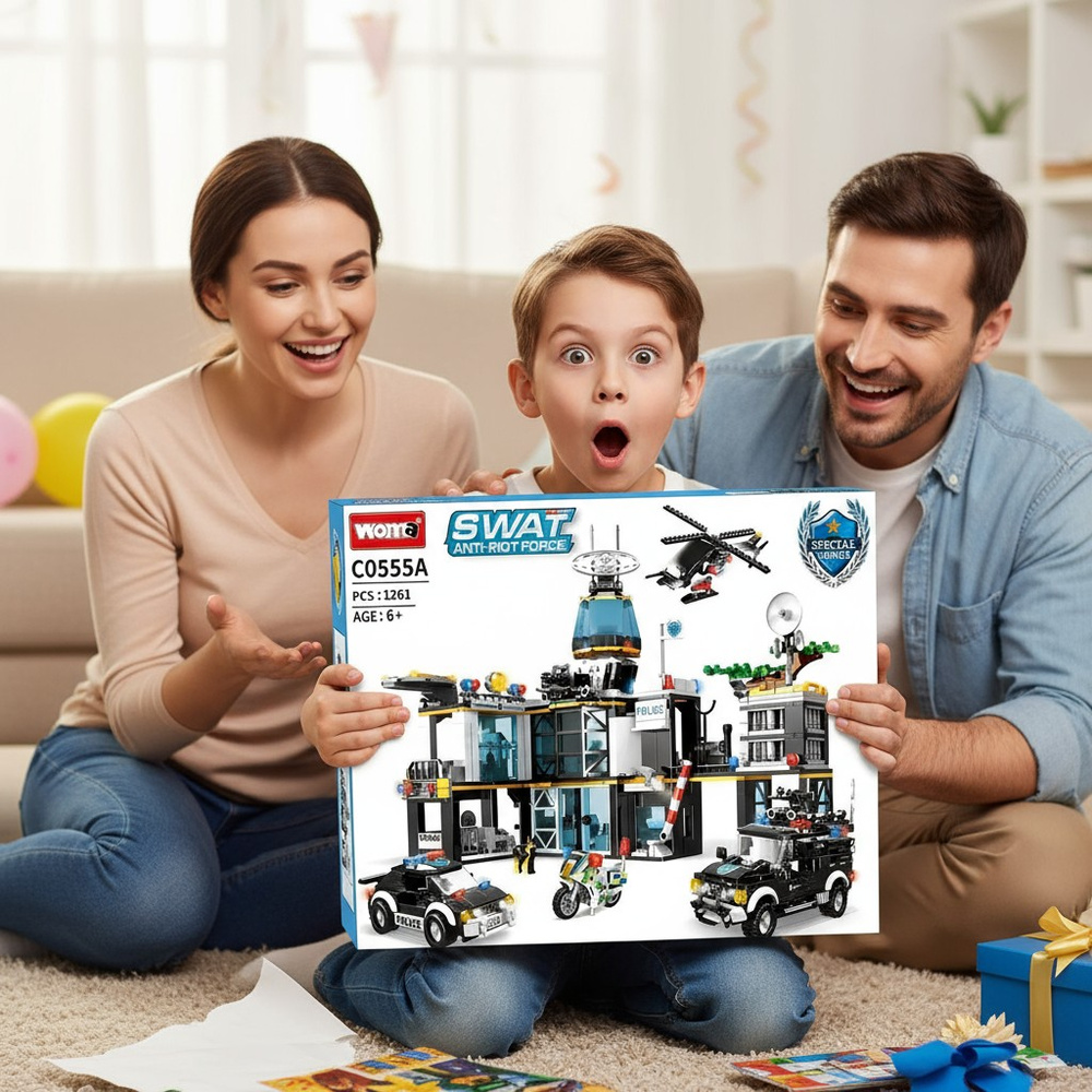 - Zestaw klocków konstrukcyjnych „Policja” – 1261 elementów do budowy komisariatu, radiowozu i pojazdów. Kompatybilne z markowymi klockami, dla dzieci od 6 lat. Rozwija kreatywność i logiczne myślenie.