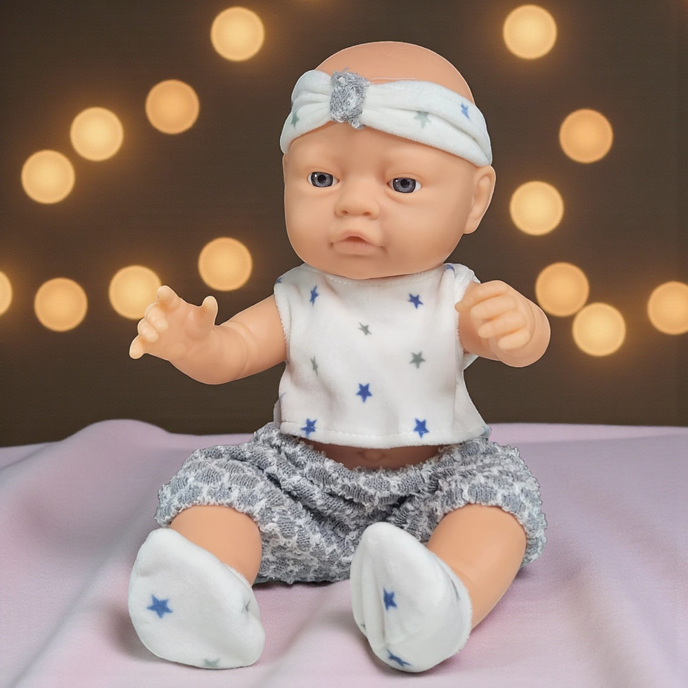 - Naturalny kolor skóry, subtelne rysy twarzy i realistyczne proporcje – lalka wygląda jak prawdziwe niemowlę.