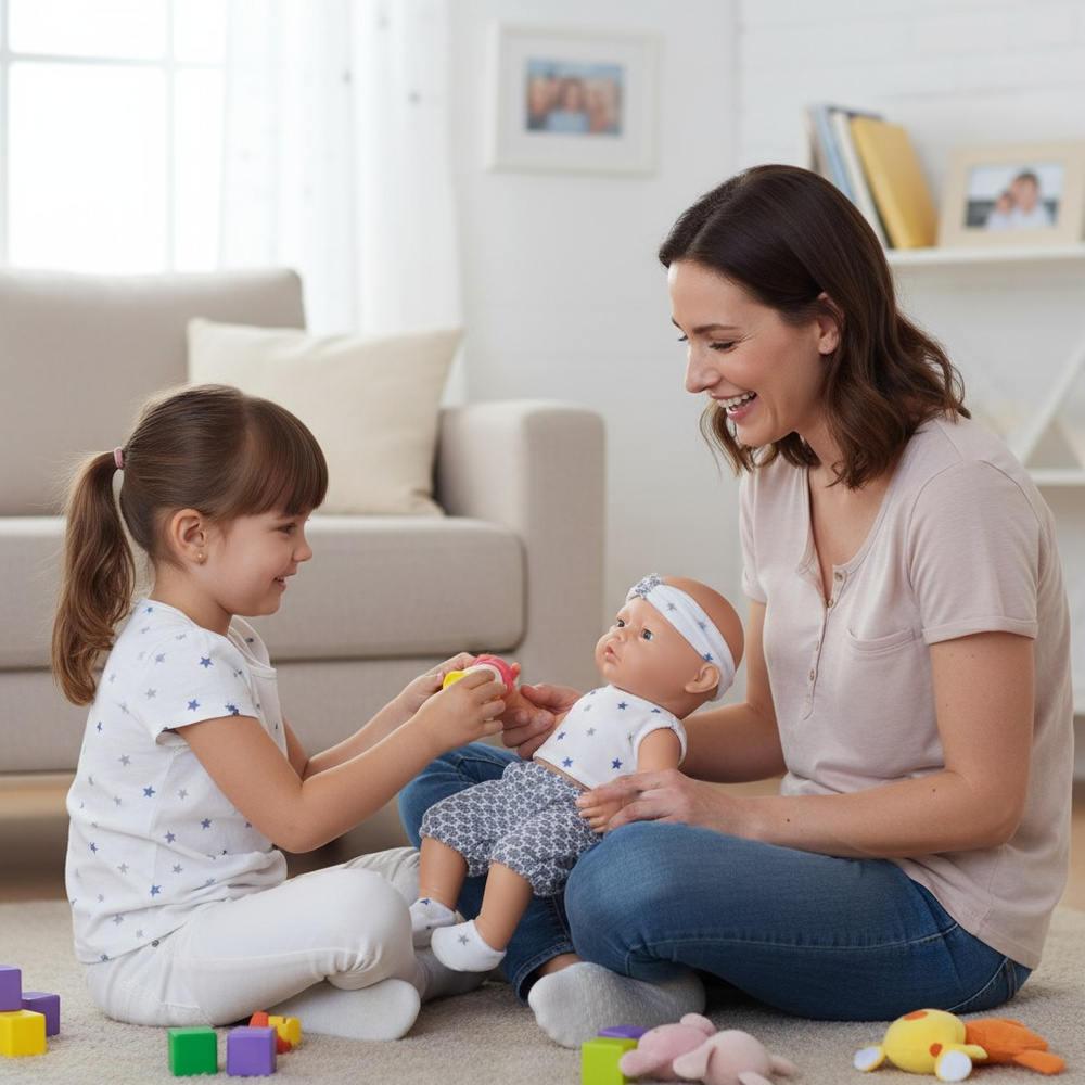 - Uczy empatii i odpowiedzialności – dziecko naśladuje dorosłych, opiekując się bobasem.