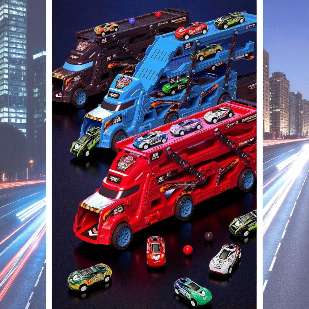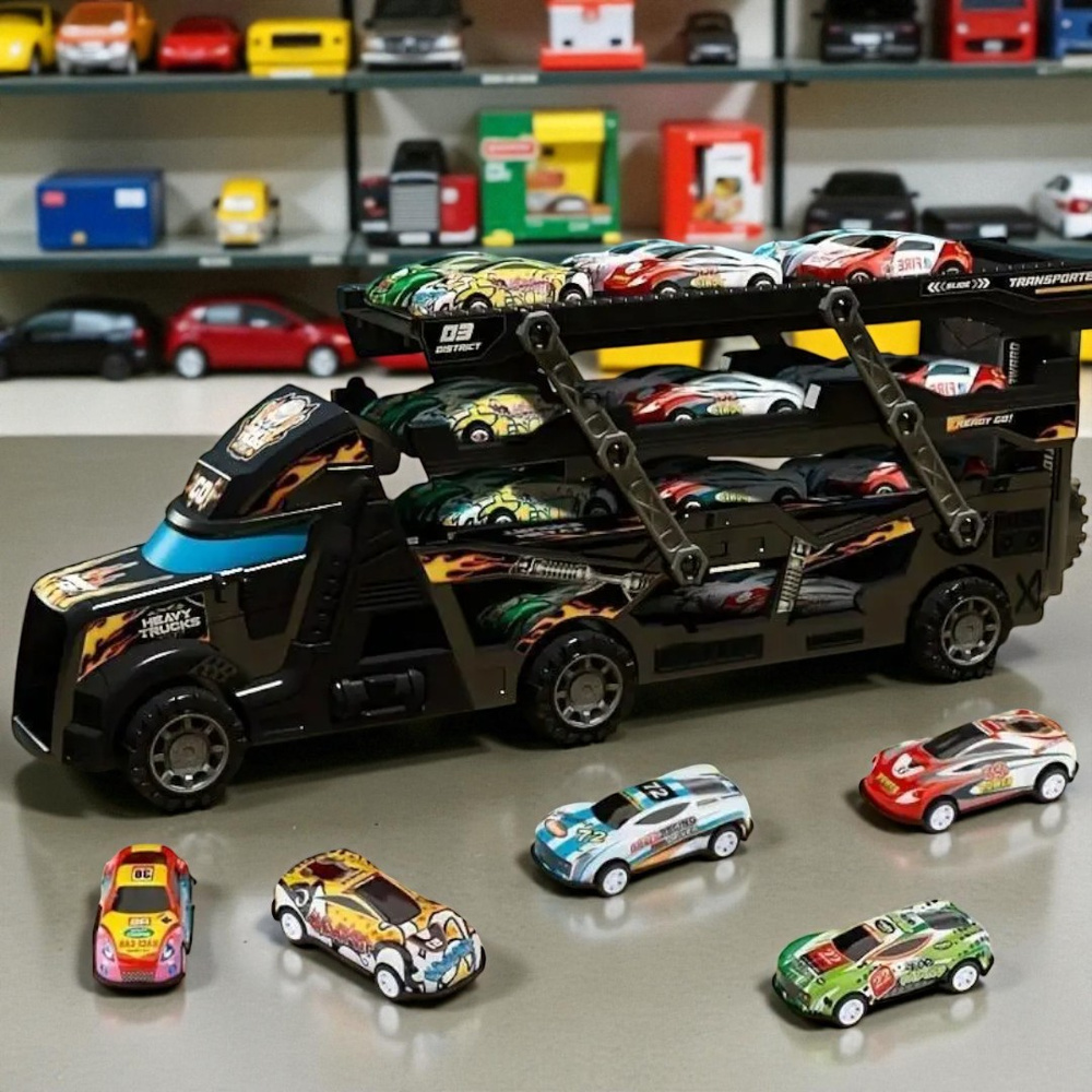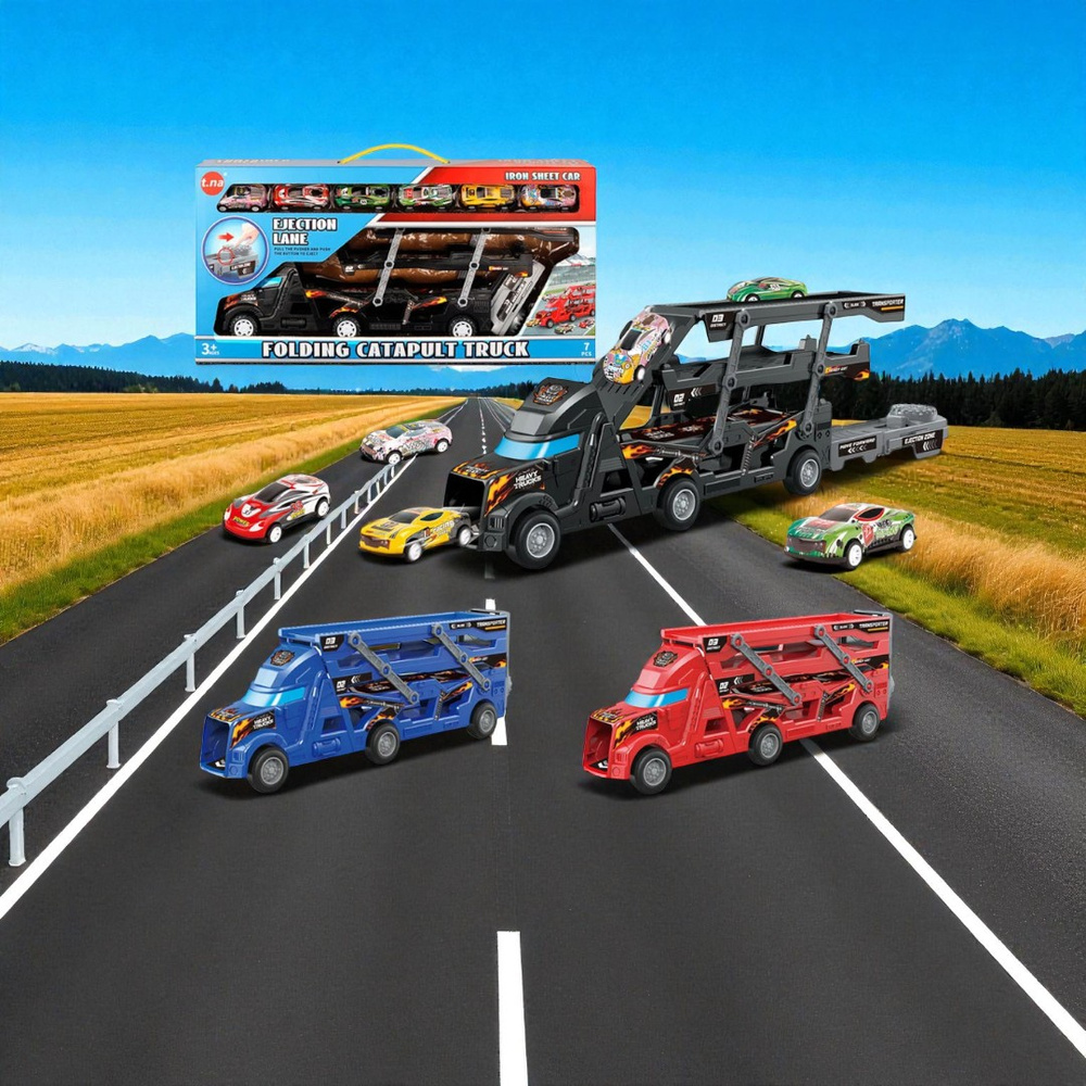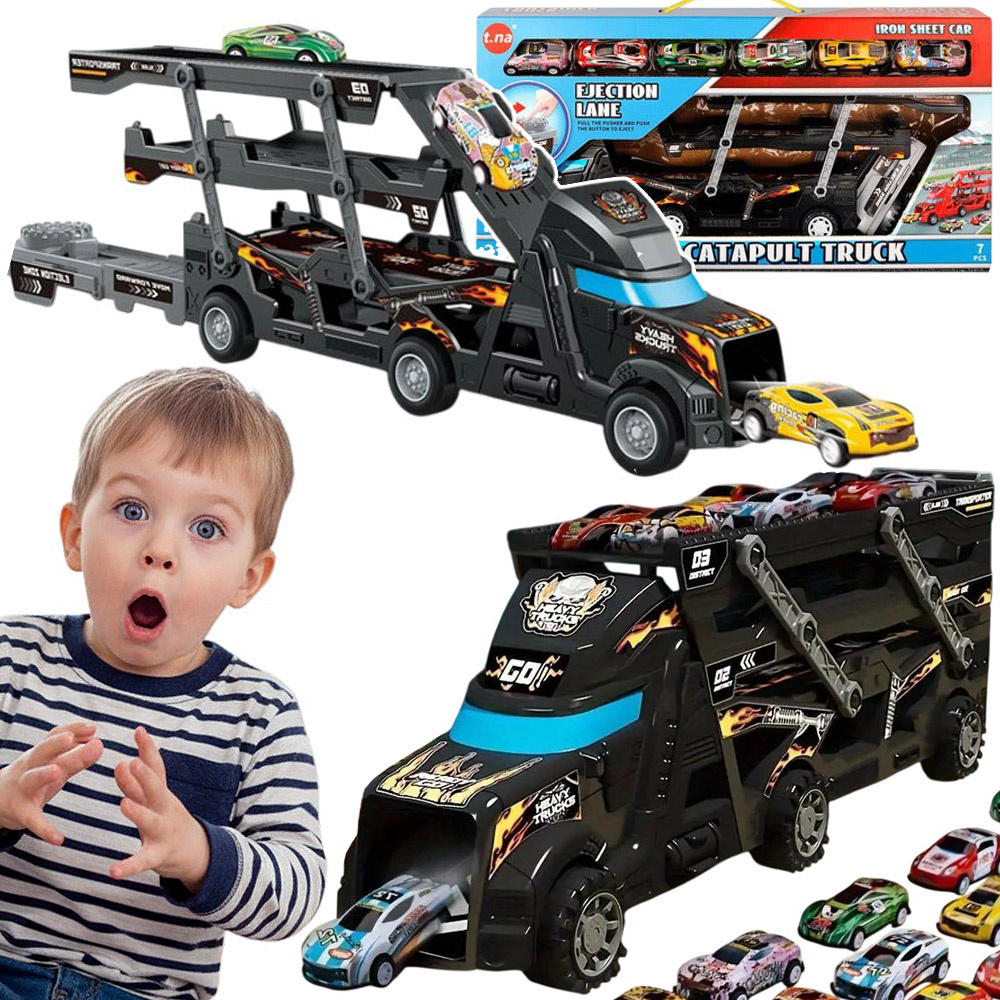 DUŻA CIĘŻARÓWKA TIR LAWETA + 6 AUT RESORAKI WYRZUTNIA – ZESTAW DLA DZIECI