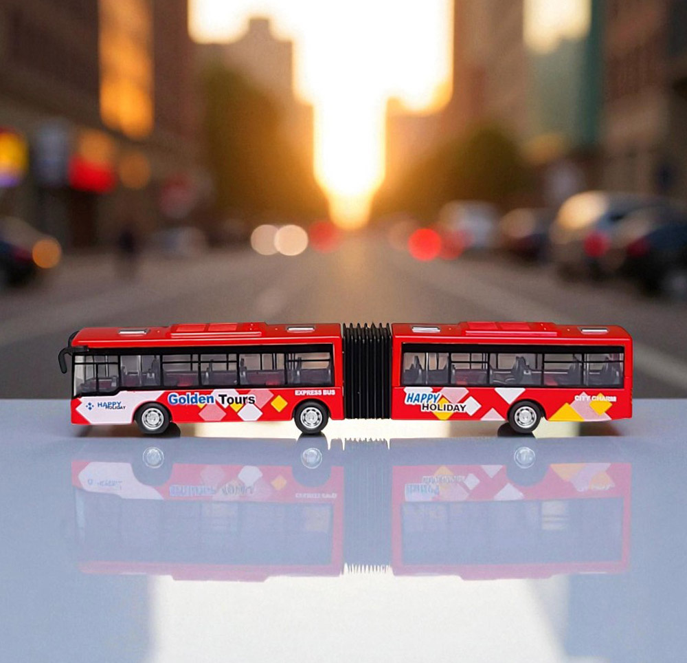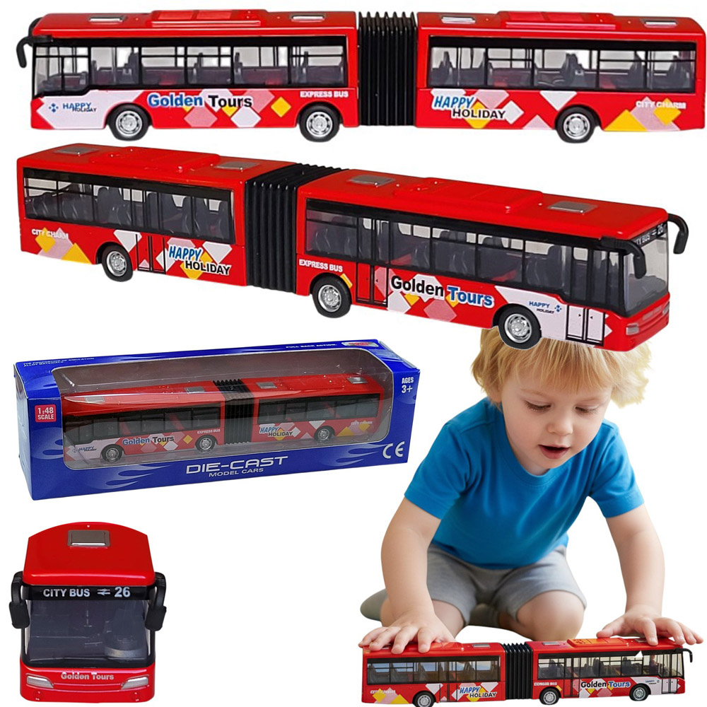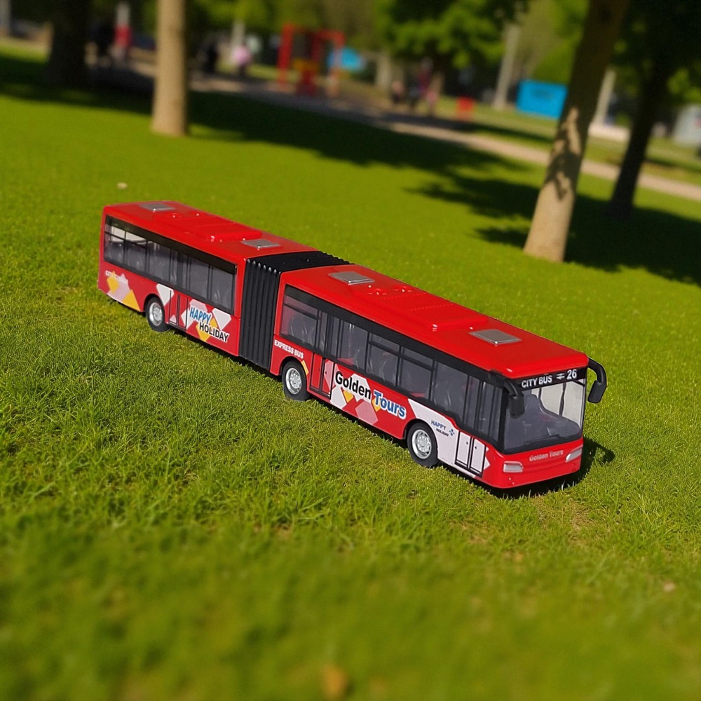 • Duży przegubowy autobus miejski 23 cm z metalu – solidna zabawka dla dzieci, rozwijająca kreatywność, idealny prezent. Metalowy korpus, realistyczny wygląd, doskonała jakość.