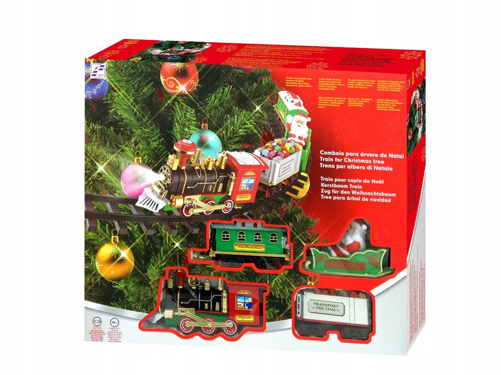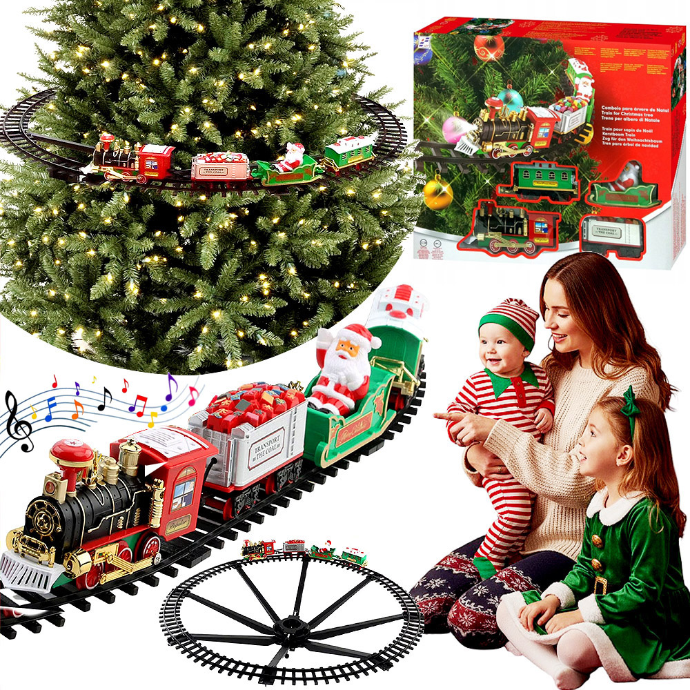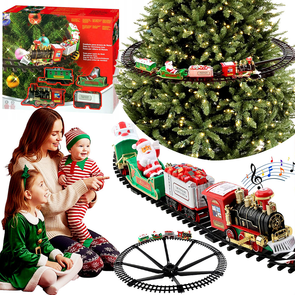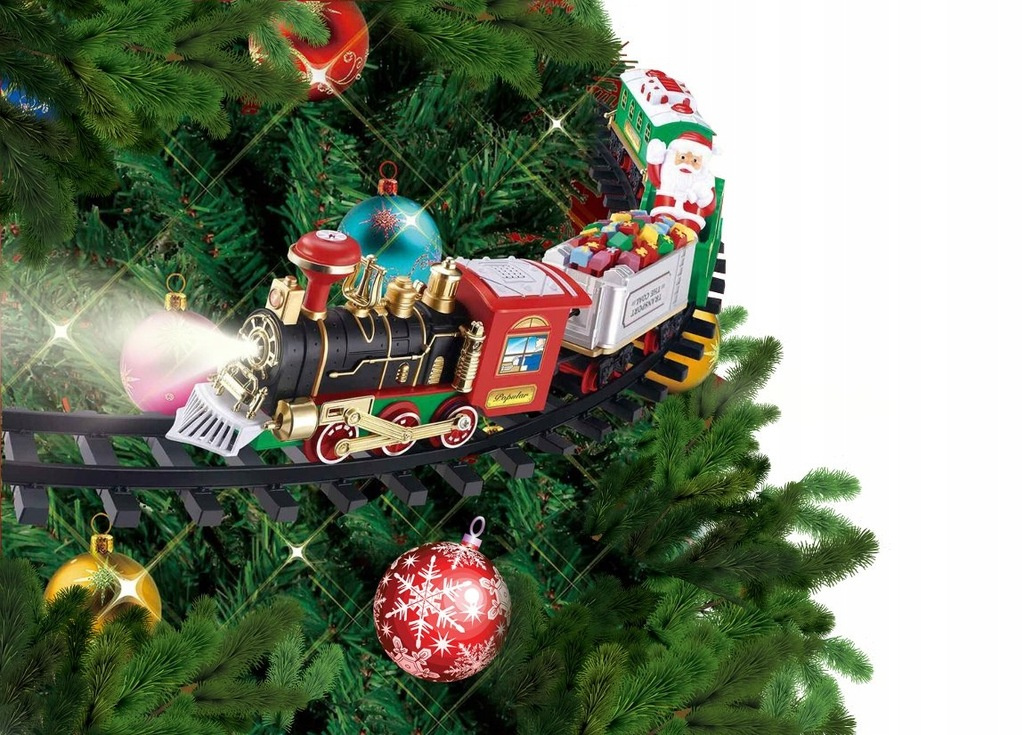 ŚWIĄTECZNY POCIĄG KOLEJKA I TORY MIKOŁAJ NA CHOINKĘ POD OZDOBA LED DŹWIĘKI