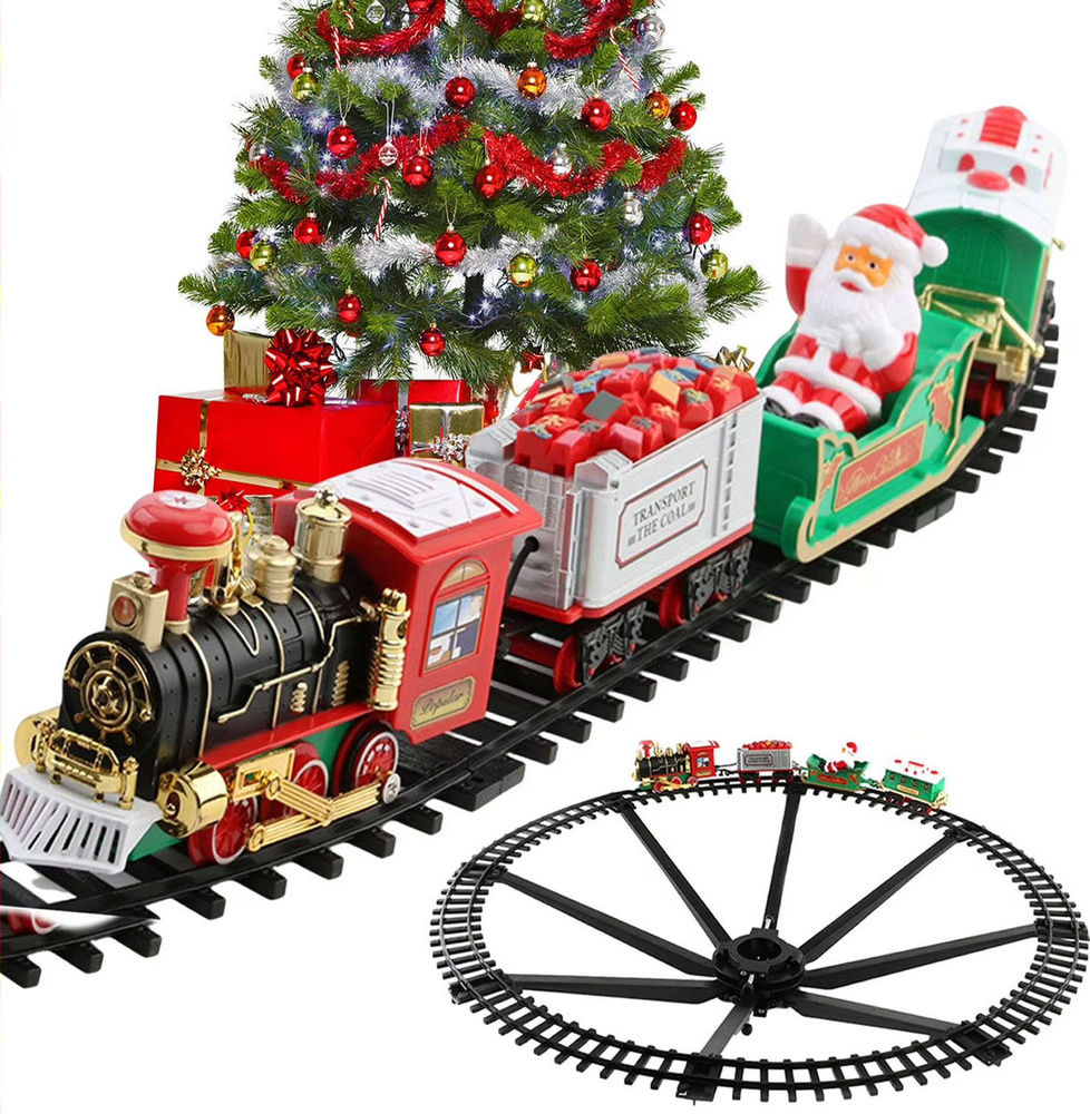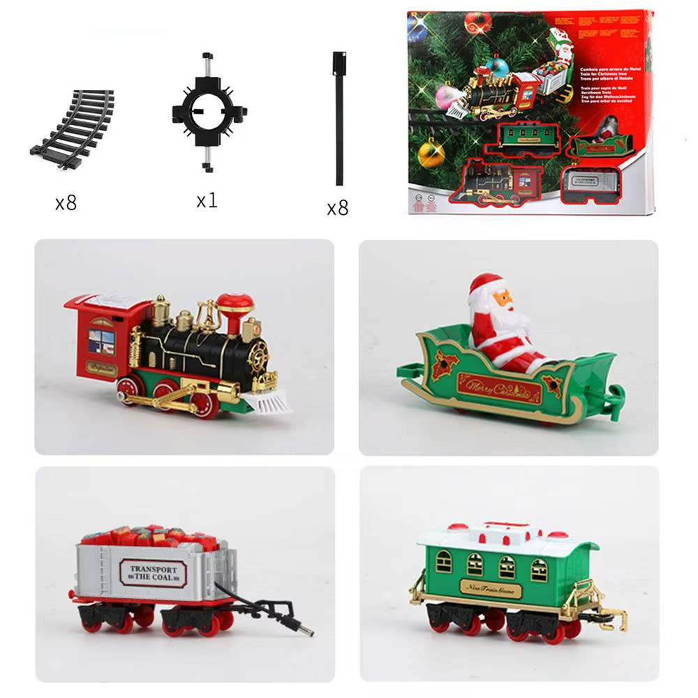 Stwórz wyjątkowy klimat świąt dzięki tej elektrycznej kolejce świątecznej, która łączy w sobie piękno bożonarodzeniowej ozdoby i radość zabawy. Zestaw zawiera lokomotywę z efektami świetlnymi i dźwiękowymi, wagony, tory oraz elementy montażowe – wszystko, by stworzyć uroczy, poruszający się pociąg wokół Twojej choinki!