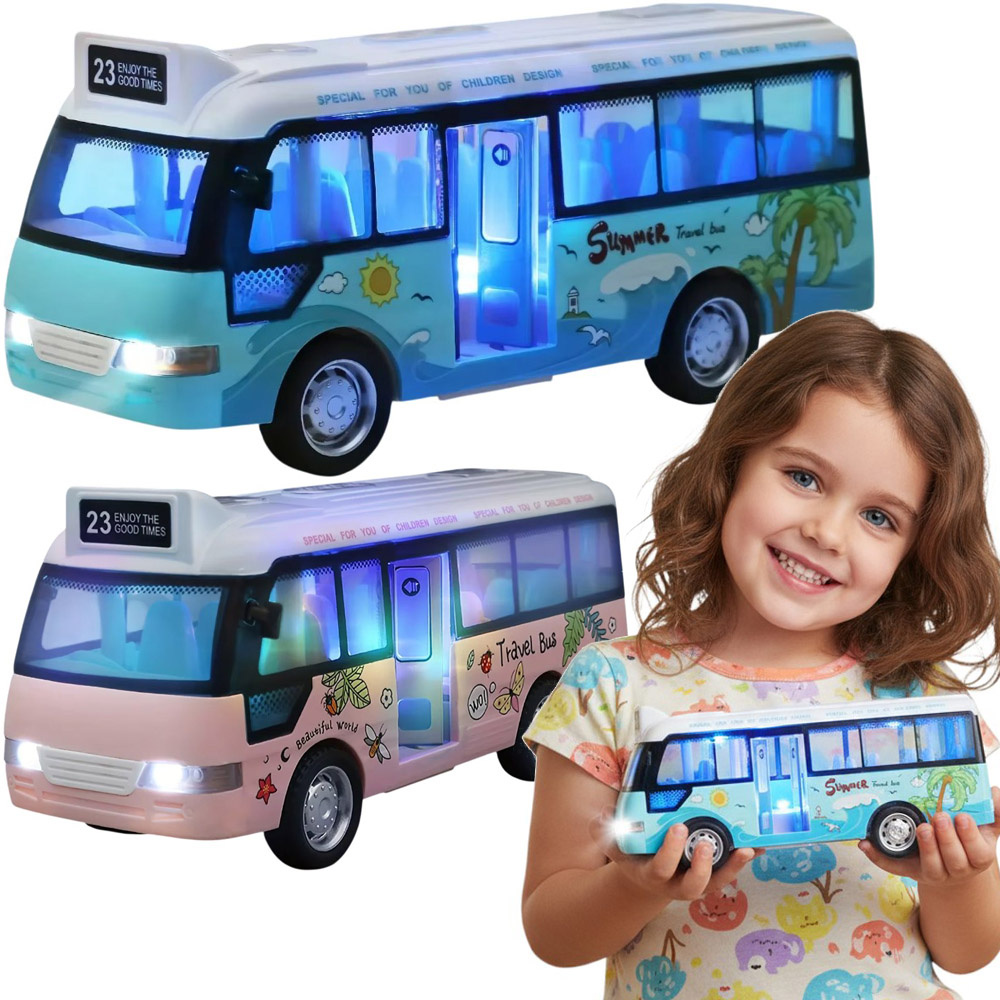 Interaktywny Autobus Szkolny Wakacyjny ZABAWKA AUTO Dźwięk Świata LED Napęd