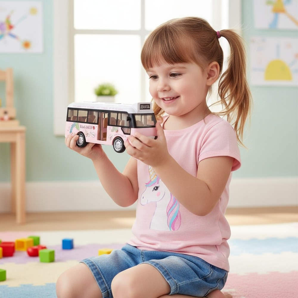 Autobus został wyposażony w podświetlenie LED i realistyczne dźwięki silnika, klaksonu oraz komunikatów. Efekty świetlno-dźwiękowe sprawiają, że zabawa staje się niezwykle realistyczna i przyciąga uwagę najmłodszych. To nie tylko rozrywka, ale też doskonała stymulacja wzrokowo-słuchowa.