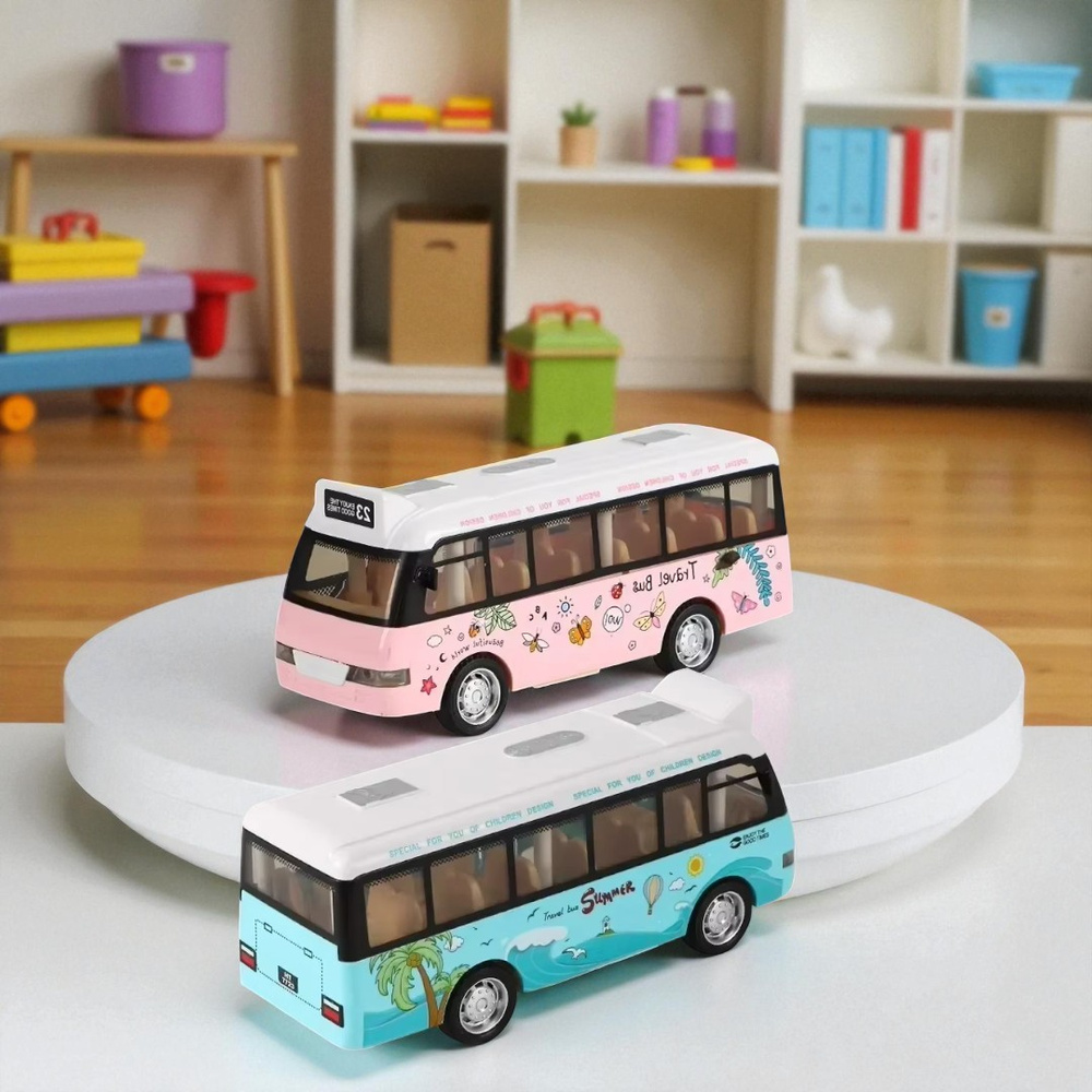 Autobus posiada otwierane drzwi, dzięki czemu dziecko może zapraszać swoje figurki i lalki na przejażdżkę. Zabawa rozwija kreatywność, wyobraźnię oraz zdolności społeczne, pozwalając tworzyć własne historie o podróżach i szkolnych przygodach.