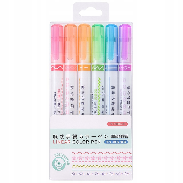 Odkryj kreatywny zestaw 6 kolorowych markerów/pisaków do szlaczków i wzorków, który sprawi, że nauka i zabawa staną się jeszcze ciekawsze! To idealny wybór dla dzieci, przedszkolaków i uczniów wczesnoszkolnych, a także dla dorosłych, którzy uwielbiają ozdabiać notatki, kartki i projekty.