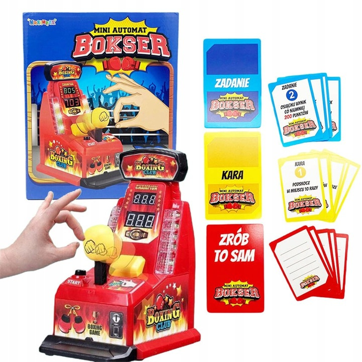 GRA ZRĘCZNOŚCIOWA BOKSER MINI MIERZENIE SIŁY Z ZADANIAMI KARTAMI ZABAWKA
