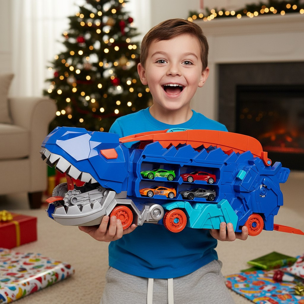 - Gigantyczny Tyranozaur Samochód 3 w 1 to innowacyjna zabawka, która łączy w sobie dinozaura, tor wyścigowy i transporter samochodów. Dzieci uwielbiają jego transformacje, emocje i dźwięki zabawy. To idealny prezent, który rozwija wyobraźnię i zapewnia godziny fantastycznej zabawy.