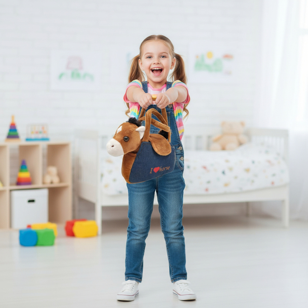 Ten pluszowy konik w torebce to idealne połączenie uroczego wyglądu, miękkości i świetnej zabawy. Dziecko może zabrać swojego małego przyjaciela wszędzie ze sobą – na spacer, do przedszkola, w podróż czy do znajomych.