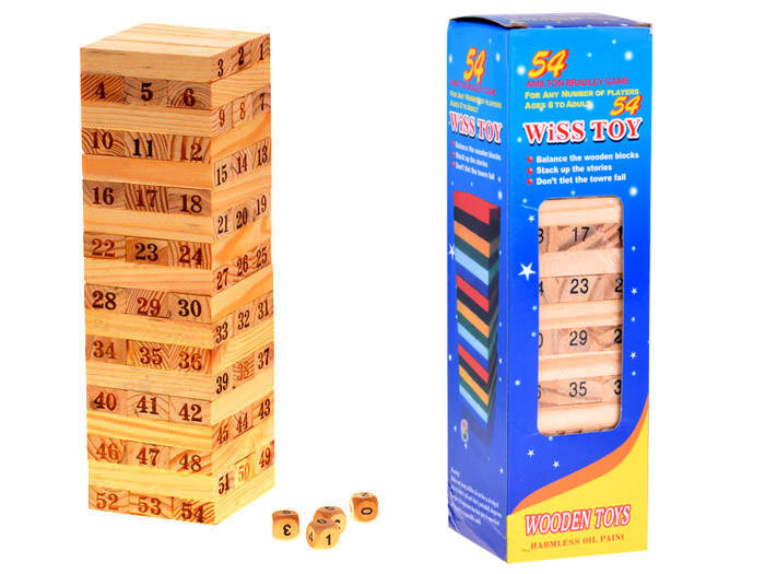 Gra składa się z 54 drewnianych klocków, które należy ułożyć w wieżę. Trzy klocki na każda warstwę. Fantastyczna propozycja, aby w gronie przyjaciół lub rodziny spędzić wiele radosnych chwil. Wesoła zabawa gwarantowana!