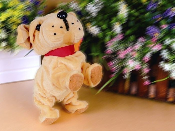 Piesek wykonany jest z miłego w dotyku pluszu wysokiej jakości.