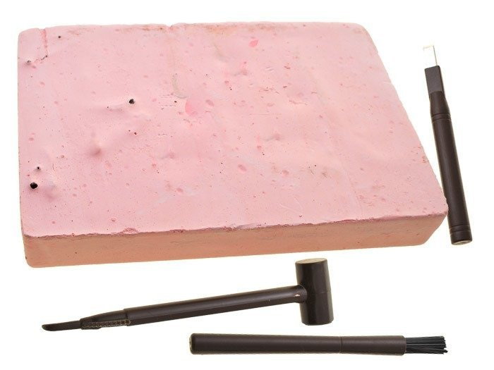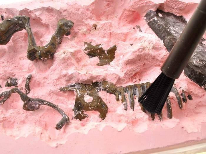 • gipsową bryłkę, w której ukryte zostały kości dinozaura