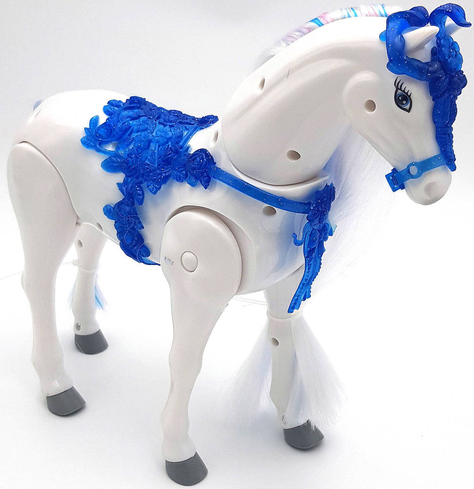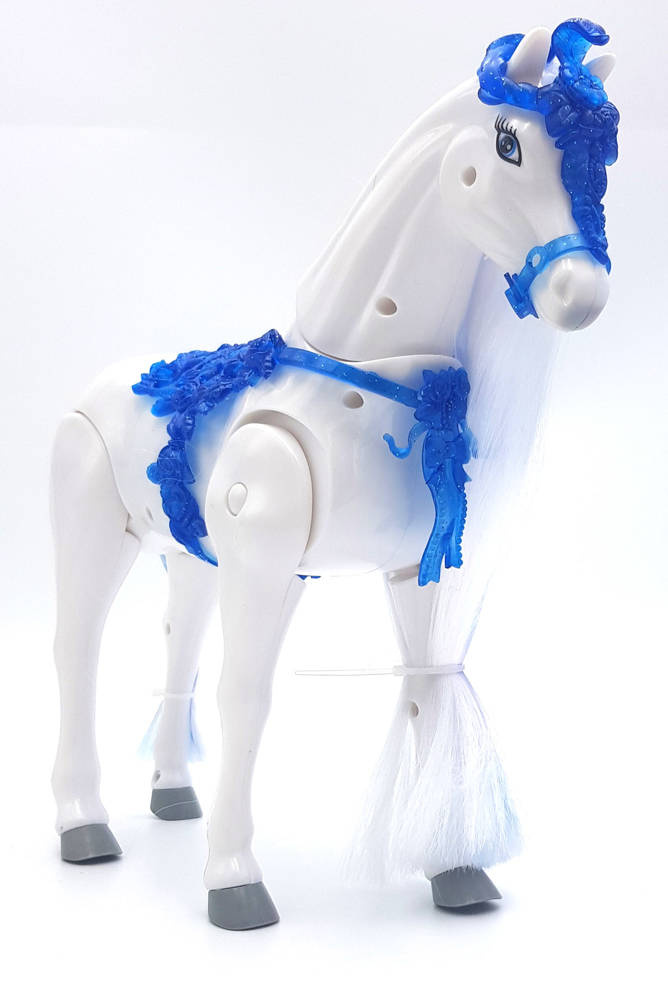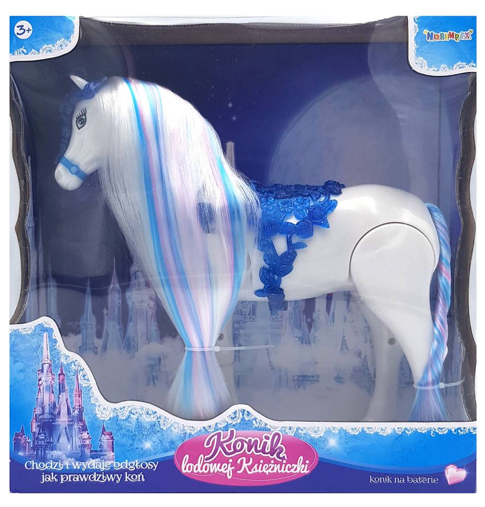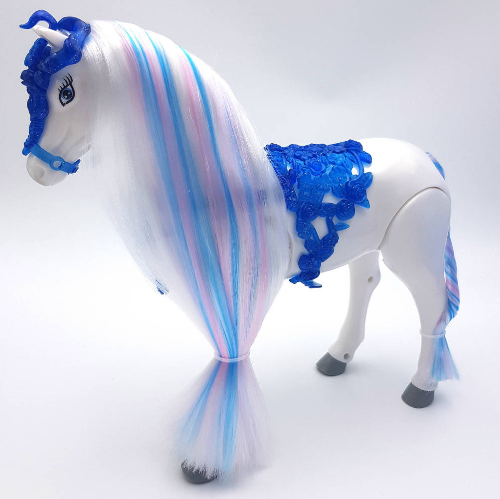 Wspaniały interaktywny chodzący koń z długą grzywą dla lalek. Będzie rewelacyjnym prezentem, który zachwyci każde dziecko. W zestawie znajduje się koń o długiej, lśniącej biało-niebiesko-różowej grzywie.