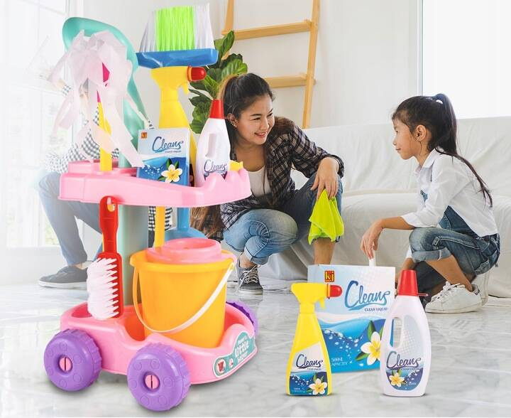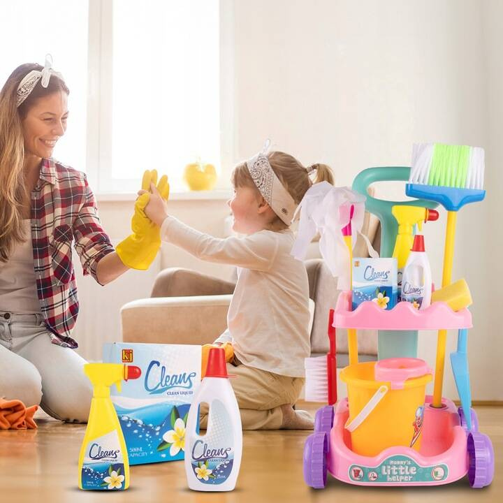 Oferujemy zestaw do sprzątania z akcesoriami, który jest wspaniałym połączeniem super frajdy z pożytecznym. Dzieci uwielbiają naśladować dorosłych, a przy tej zabawie jednocześnie nauczą się, jak ważne jest utrzymywanie czystości w domu.