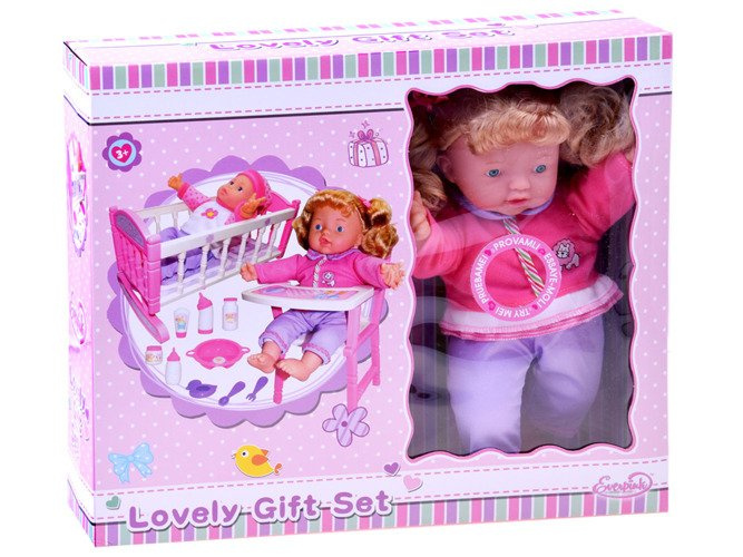 Mówiąca lalka + kołyska i akc. do karmienia ZA2517