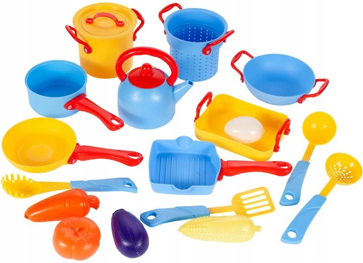 Rewelacyjny zestaw garnków będzie przydatny w każdej domowej kuchni małego kucharza. Świetnie się sprawdzi do gotowania obiadków dla lali i misiów. Produkt rozwija wyobraźnię i zdolności manualne oraz sprawia dużo radości przy wielogodzinnej zabawie.