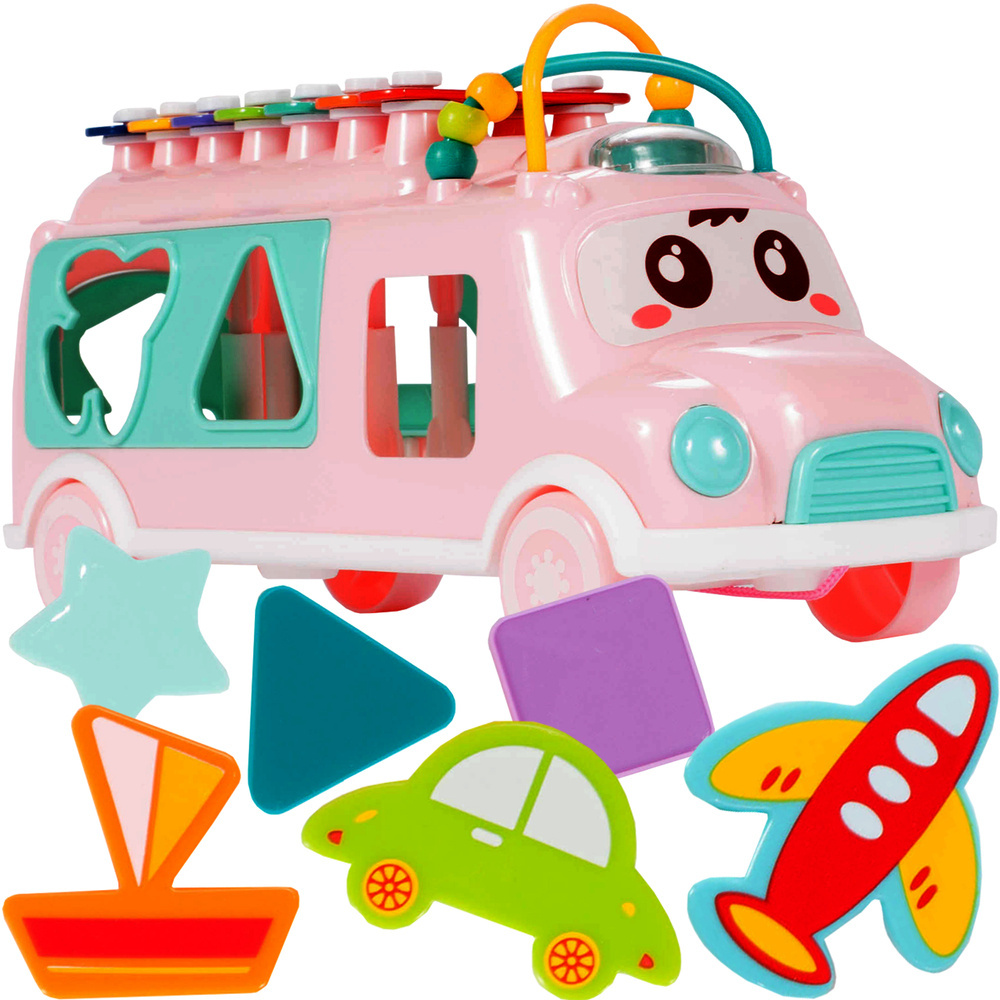 MUZYCZNY AUTOBUS Z CYMBAŁKAMI SORTER KOLOROWY KLOCKI LABIRYNT DLA DZIECI