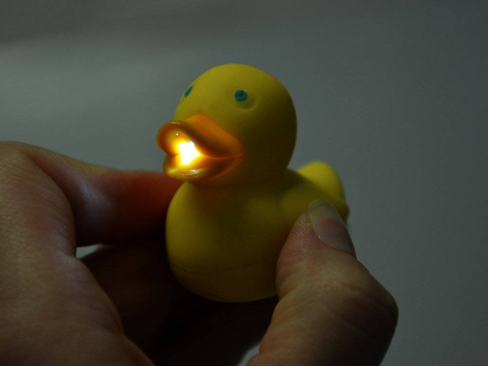 Uroczy breloczek kaczuszka ze światełkiem oraz realistycznym odgłosem, będzie idealnym dodatkiem do szkolnego plecaka, piórnika lub kluczy.