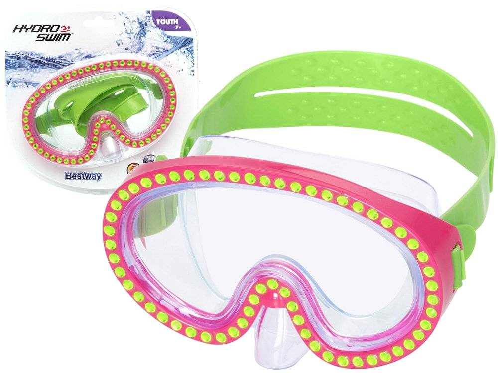 - Maska z kryształkami górskimi, różowa maska do pływania.