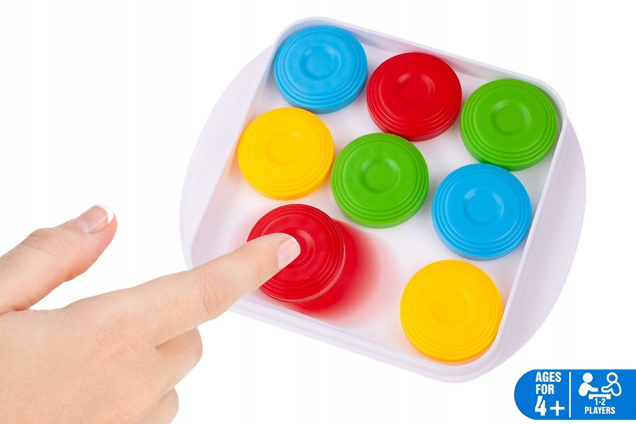 Jest to gra towarzyska dla 2 osób, bądź można trenować w pojedynkę. każdy gracz dostaje tackę i 8 krążków w różnych kolorach (czerwonym, zielonym, niebieskim i żółtym).