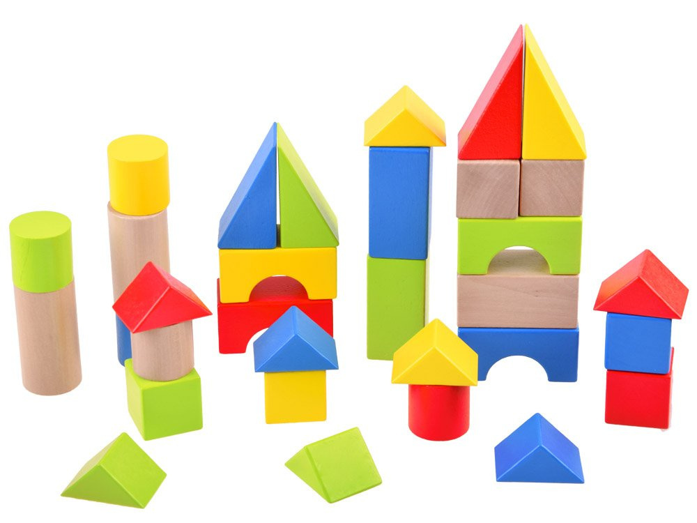 - 32 drewniane klocki o wymiarach od 4cm do 8 cm długości