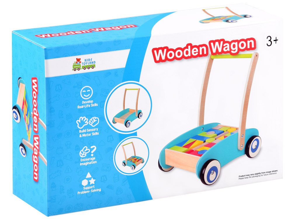 Drewniany Pchacz, chodzik, wózek z klockami ZA3724