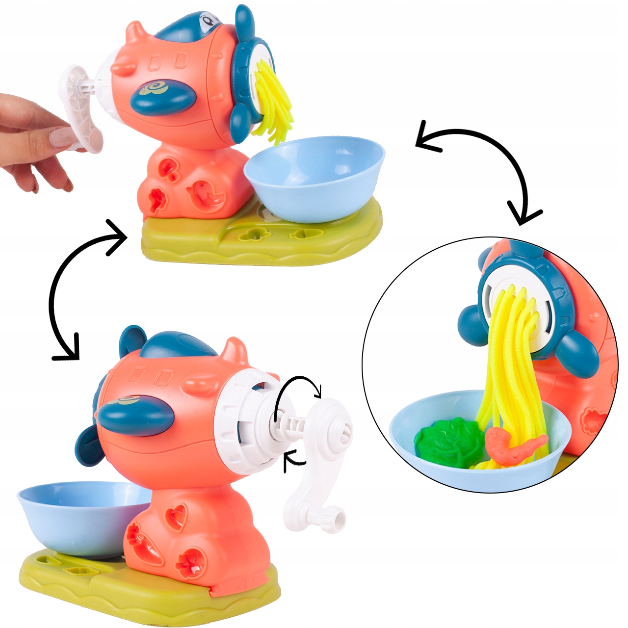 Plastyczna masa zapewni wiele godzin świetnej zabawy rozwijając wyobraźnie oraz umiejętności manualne. Maszynka posiada wiele przydatnych akcesorii, które urozmaica zabawę.