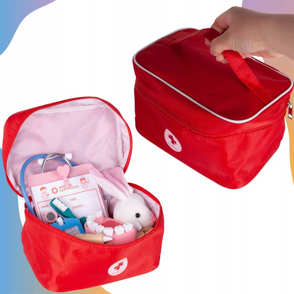 MAŁY DOKTOR DREWNIANY ZESTAW MAŁEGO LEKARZA DENTYSTY W WALIZCE DLA DZIECI